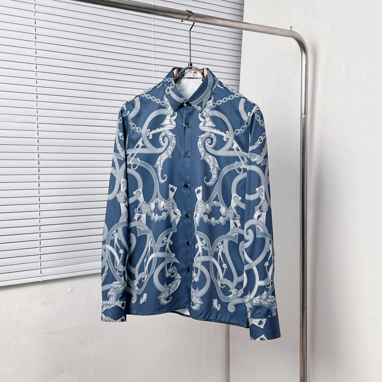 HERME 爱马 满幅锁扣链条环绕对位印花衬衫