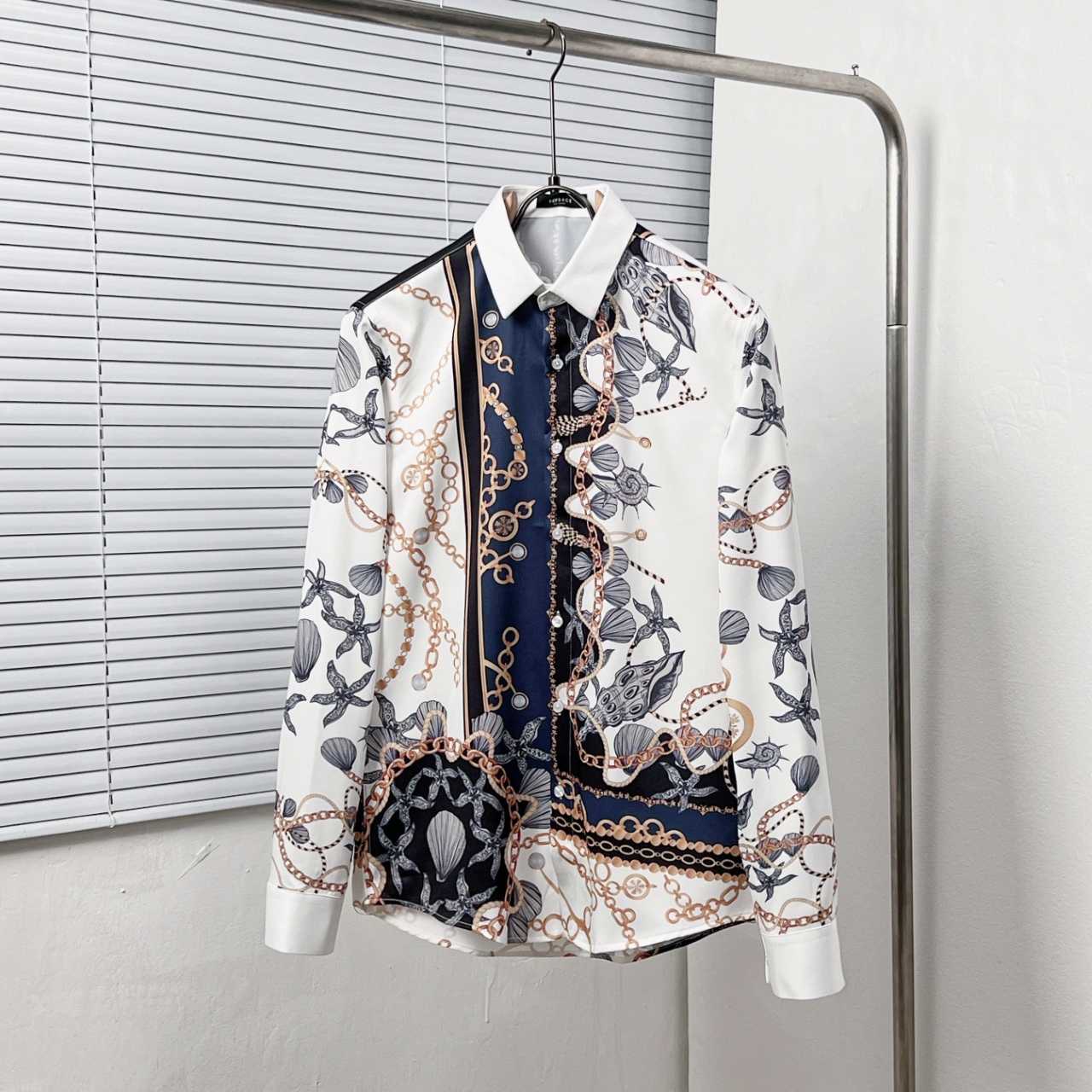 VERS 范思 海洋风贝壳链条对位印花衬衫