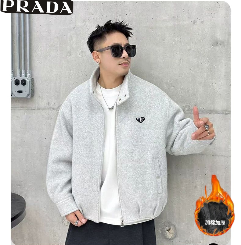 普拉达Prada冬季新款 男士高级感加棉加厚立领毛呢外套 男 428906