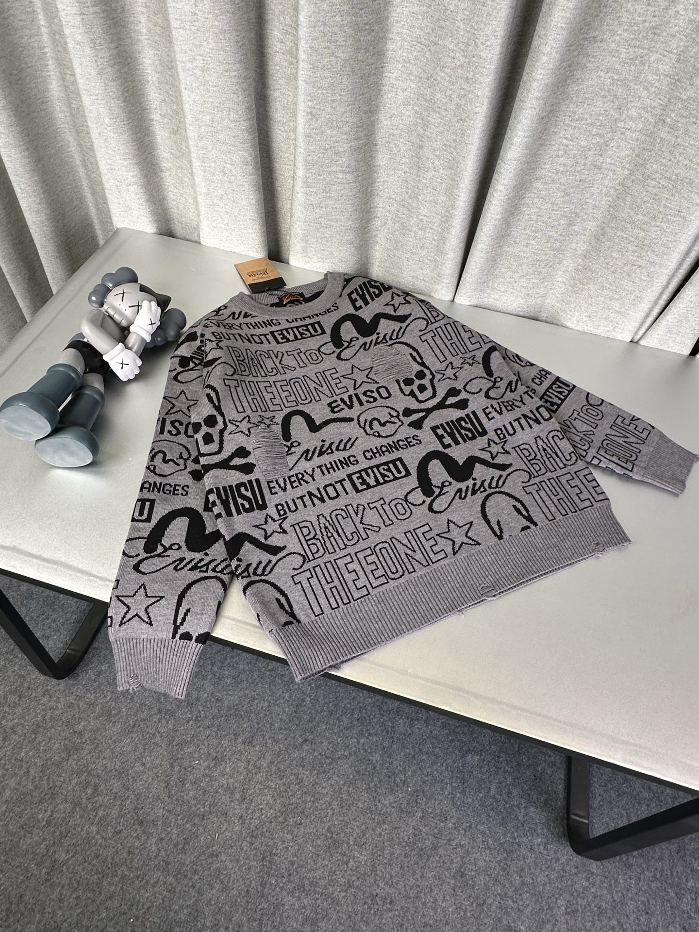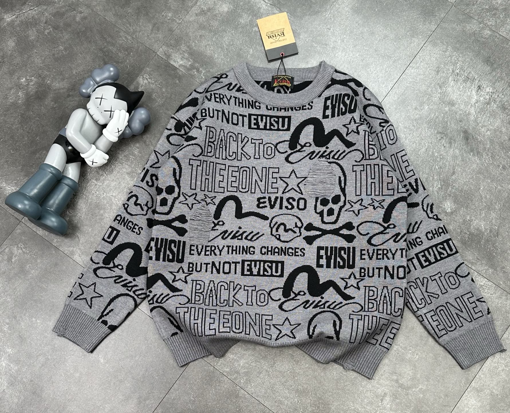 潮牌 福神evisu 满印情侣款毛衣