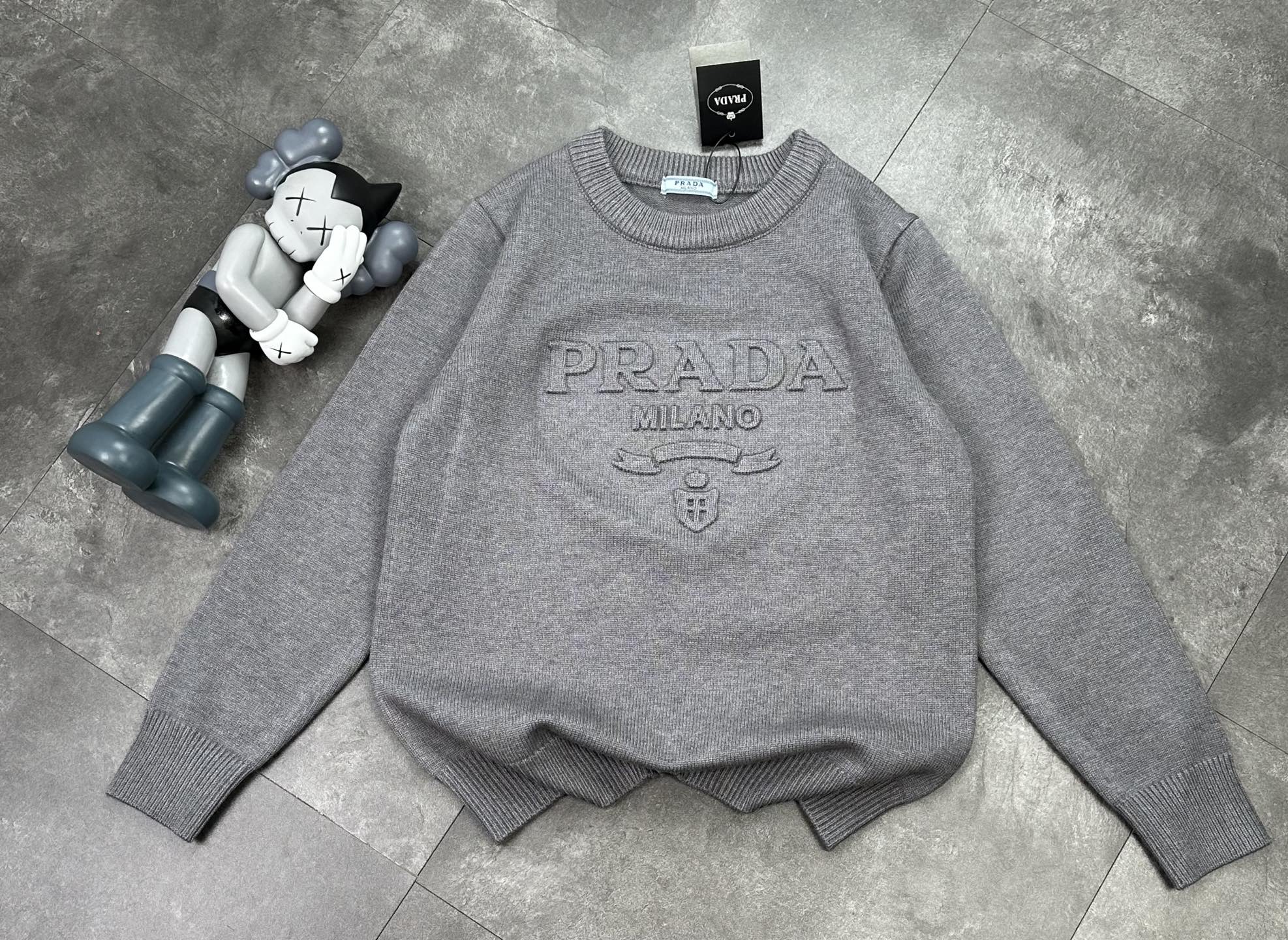 潮牌 普拉达Prada 凹凸 满印情侣款毛衣