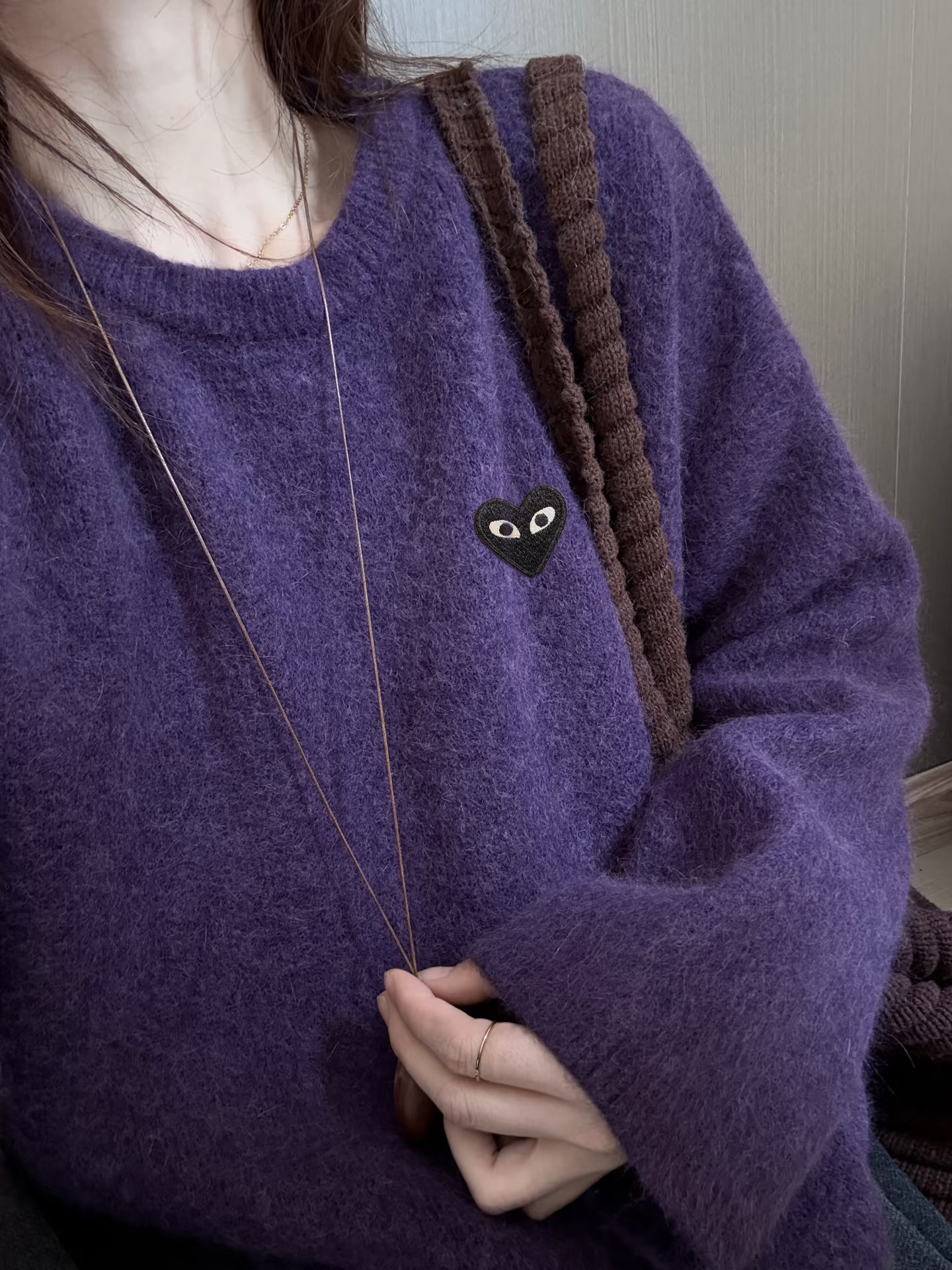 CDG川久保玲PLAY新款爱心刺绣紫色毛绒毛衣