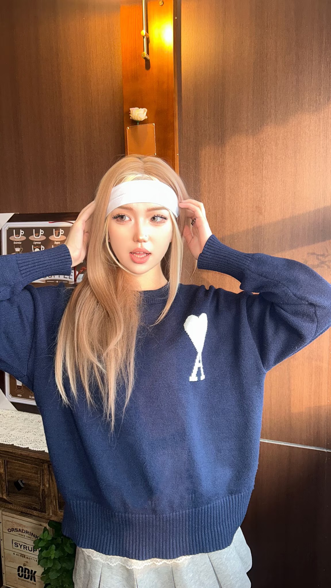 𝘼𝙢𝙞 𝙖𝙡𝙚𝙭𝙖𝙣𝙙𝙧𝙚新款爱心提花藏青色羊毛套头毛衣