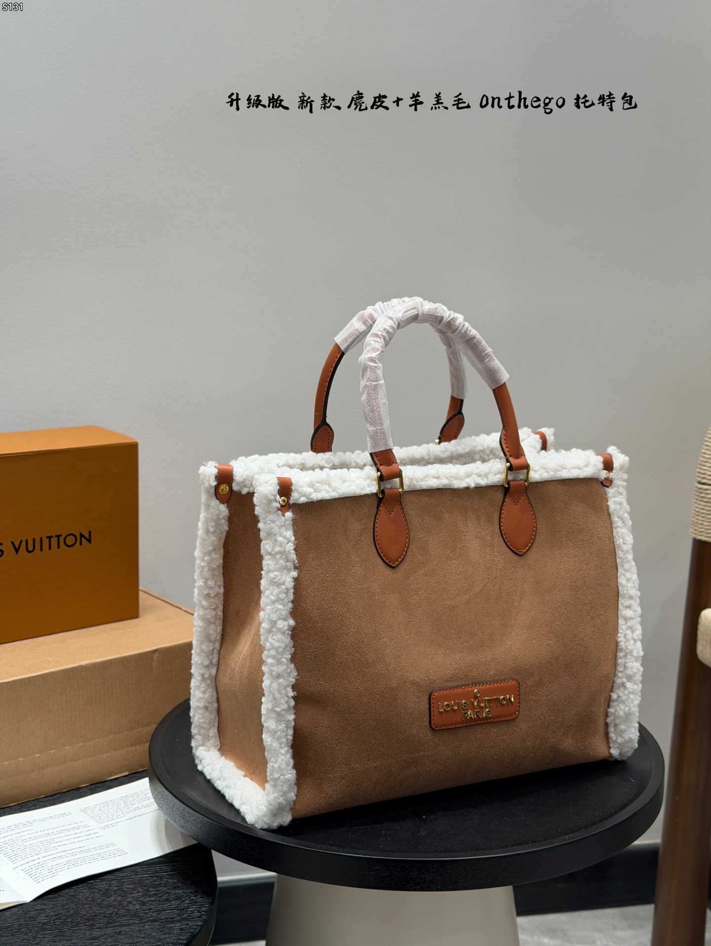 Lv新款羊羔毛拼接麂皮托特包Onthego Tote丛林托特 421771