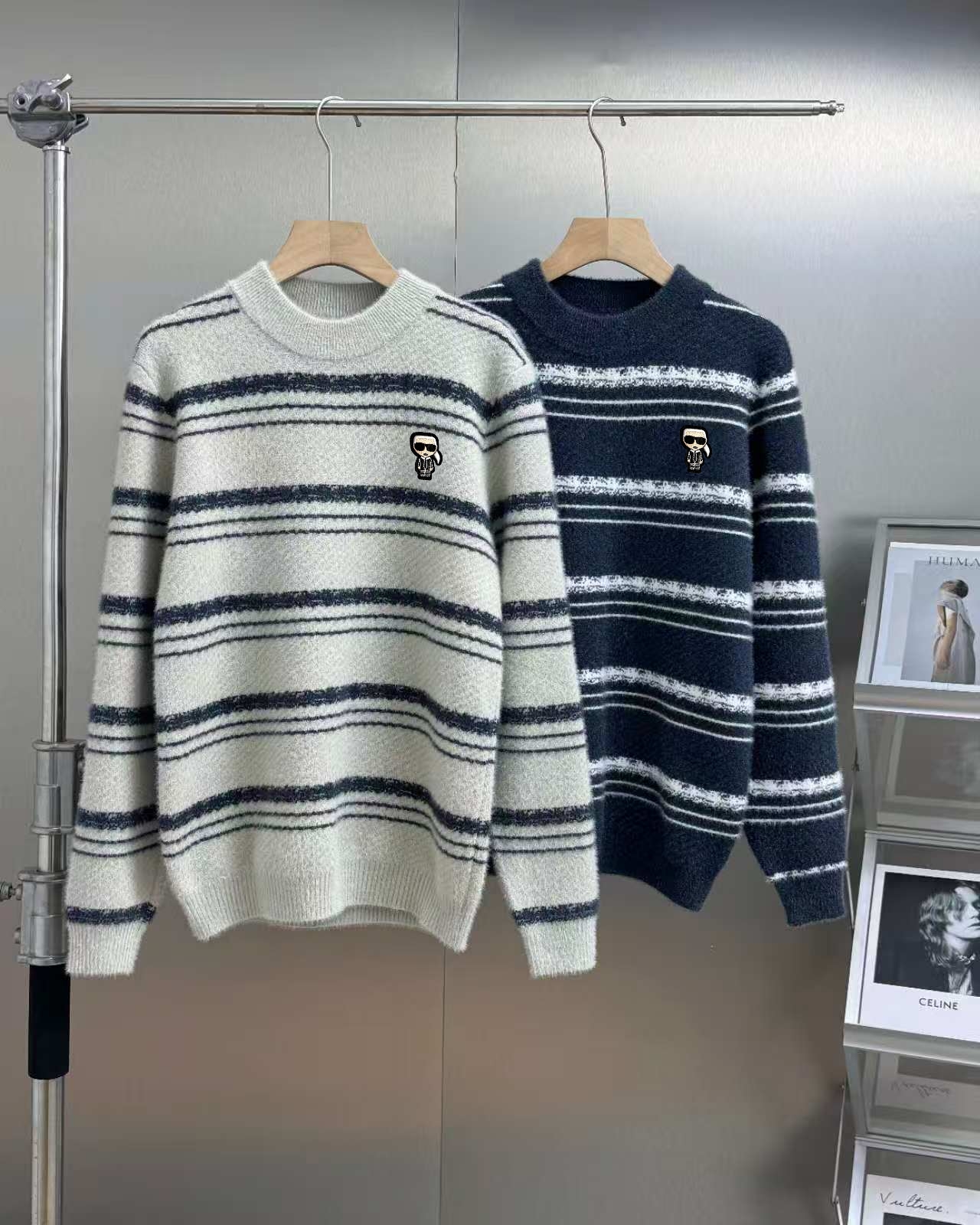 FENDI 芬迪小老佛爷秋冬条纹慵懒风宽松情侣款毛衣