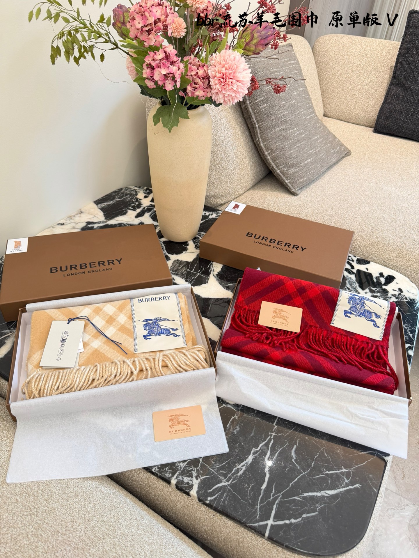 Burberry战马流苏羊绒围巾