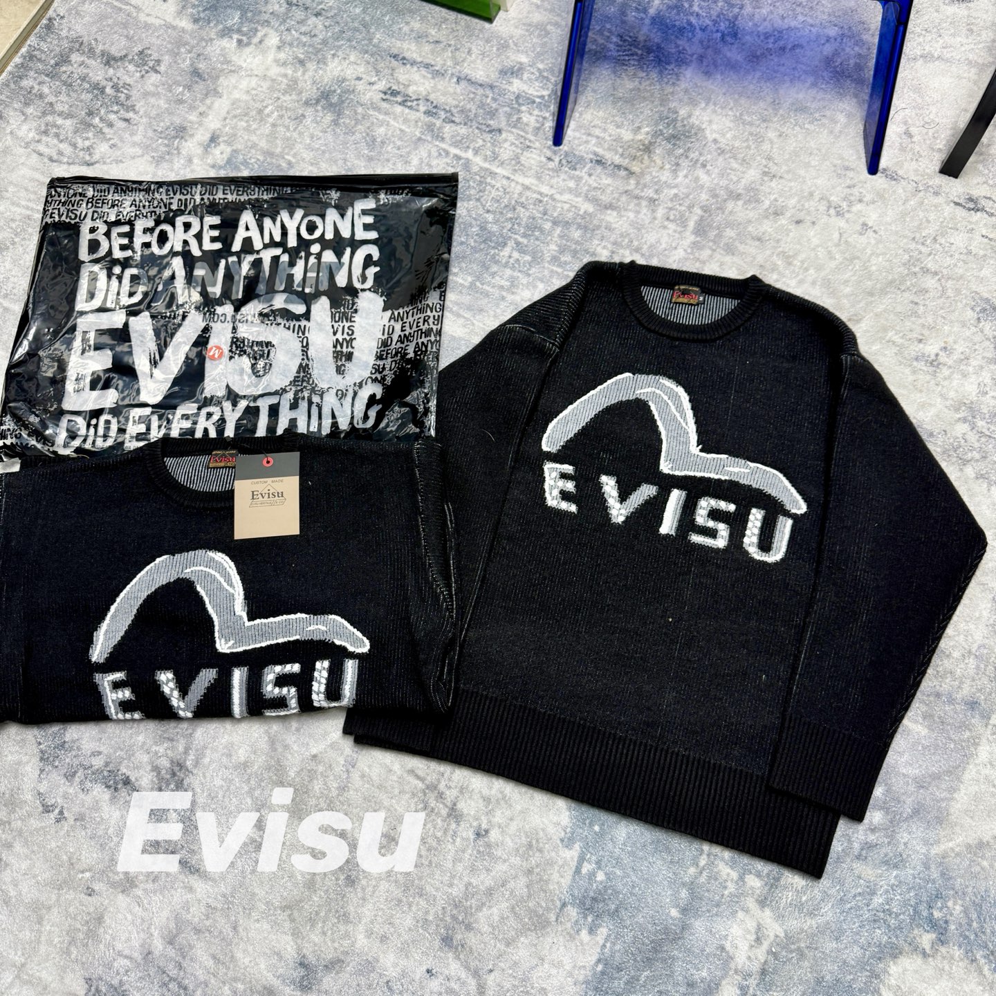 EVISU福神 2025秋季男款海鸥和商标嵌花针织套头宽松毛 441288