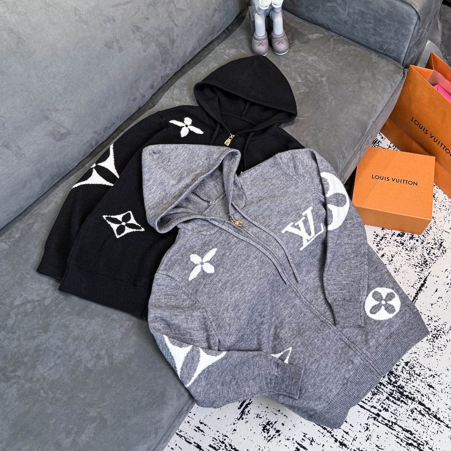 供 LOUIS VUITTON LV路易威登绣标连帽拉链针织 351703