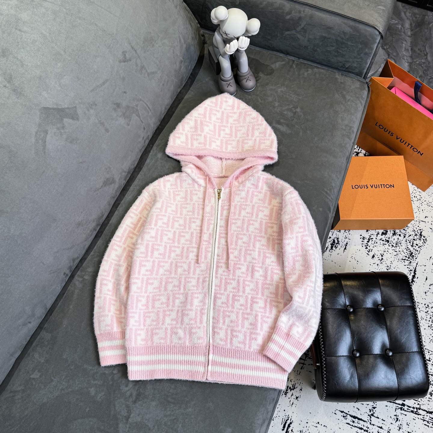 Fendi芬迪2025新款双F水貂毛软软糯糯针织毛衣连帽拉链 351291