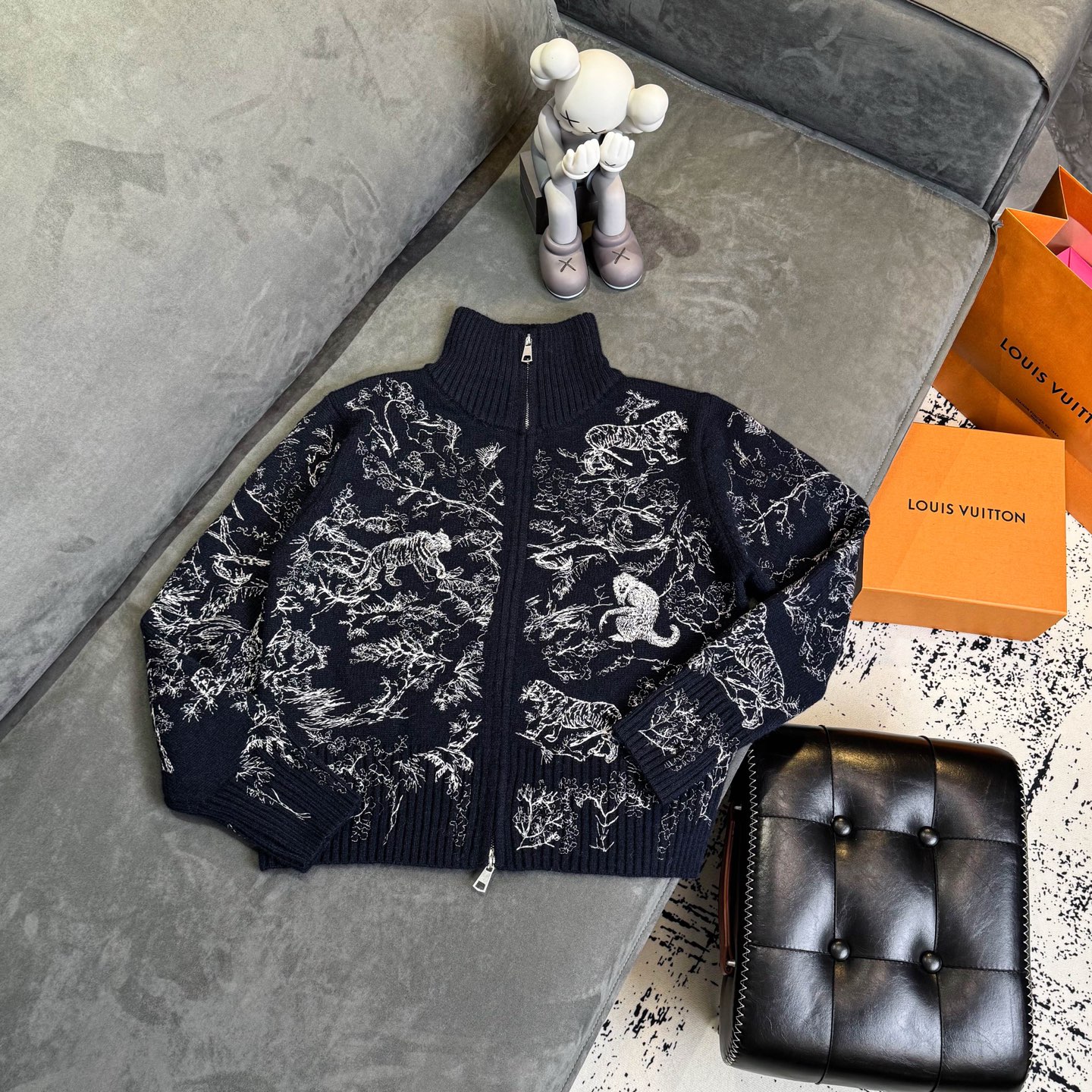 Dior迪奥动物园系列重工刺绣立领长袖双头拉链针织开衫外套