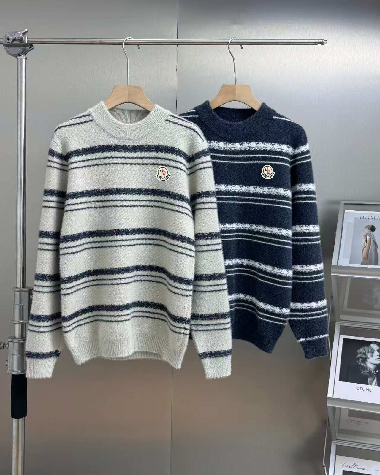 MONCLER 蒙口秋冬条纹慵懒风宽松情侣款毛衣