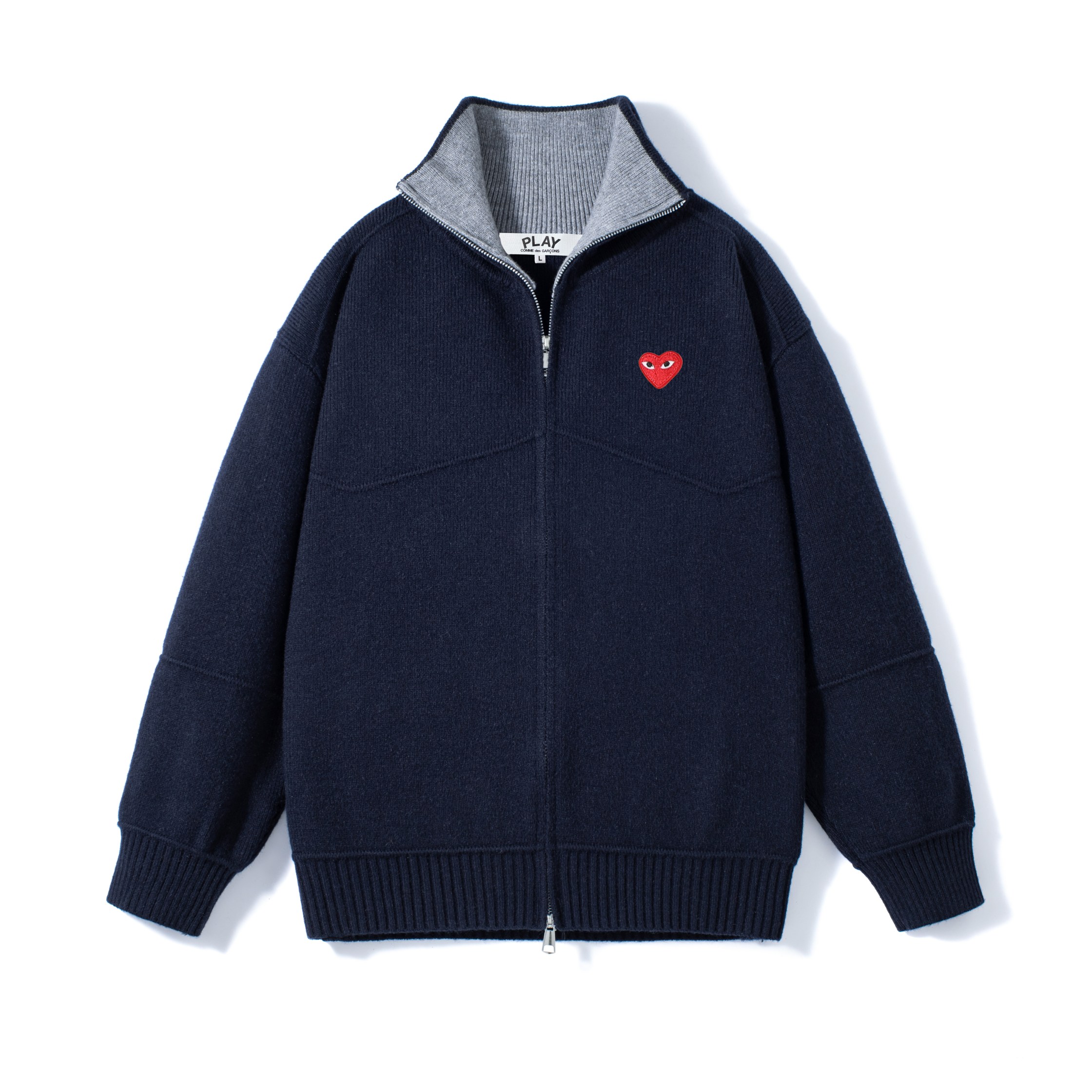 供 CDG PLAY川久保玲爱心刺绣拉链针织毛衣开衫外套