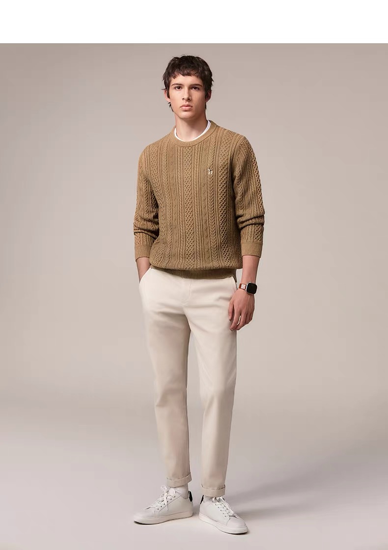 顶尖现货 Hazzys哈吉斯男士圆领肌理感绞花毛衣保暖针织衫 351603