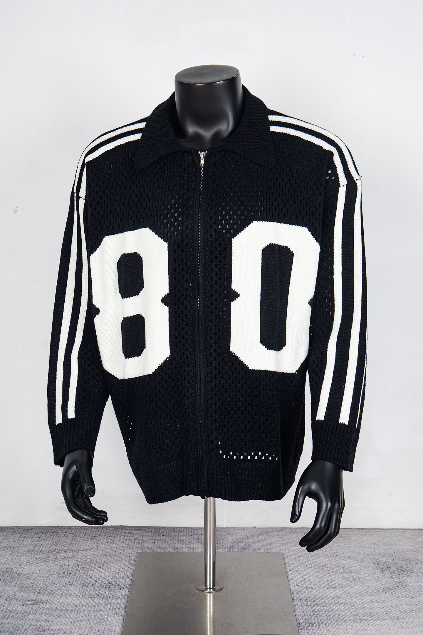 saint针织毛衣镂空字母印花拉链外套