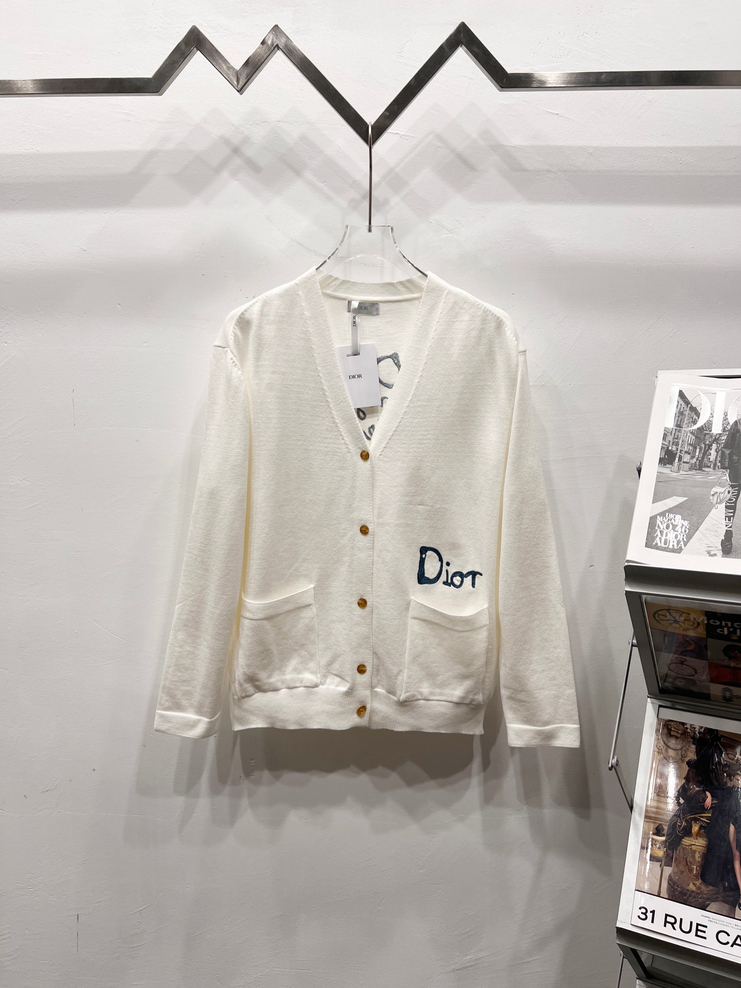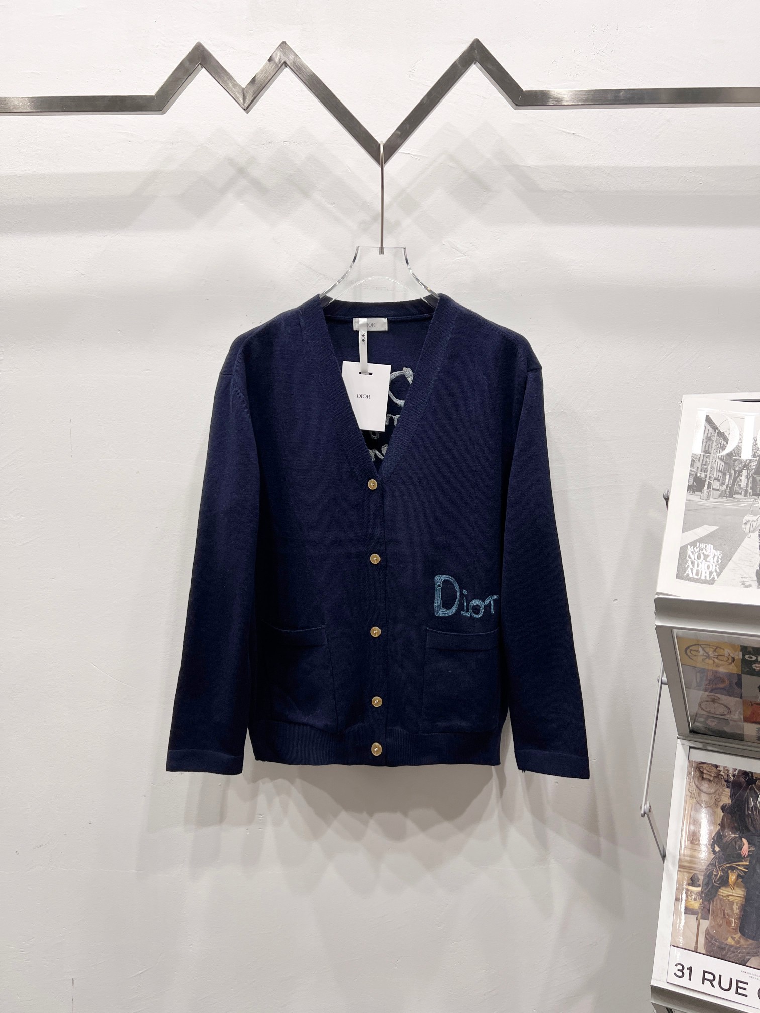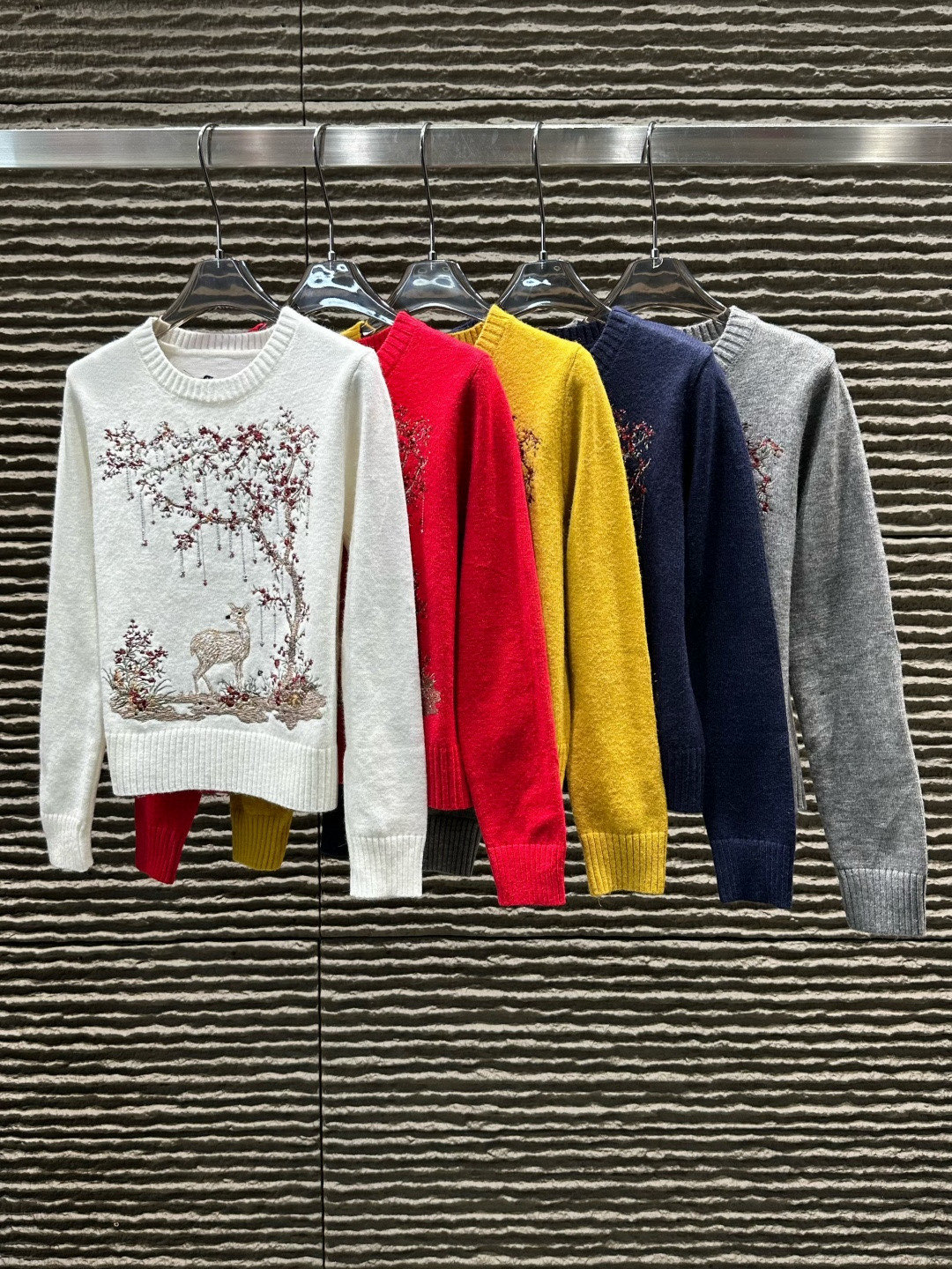 Dior迪奥重工刺绣烫钻圆领长袖针织毛衣
