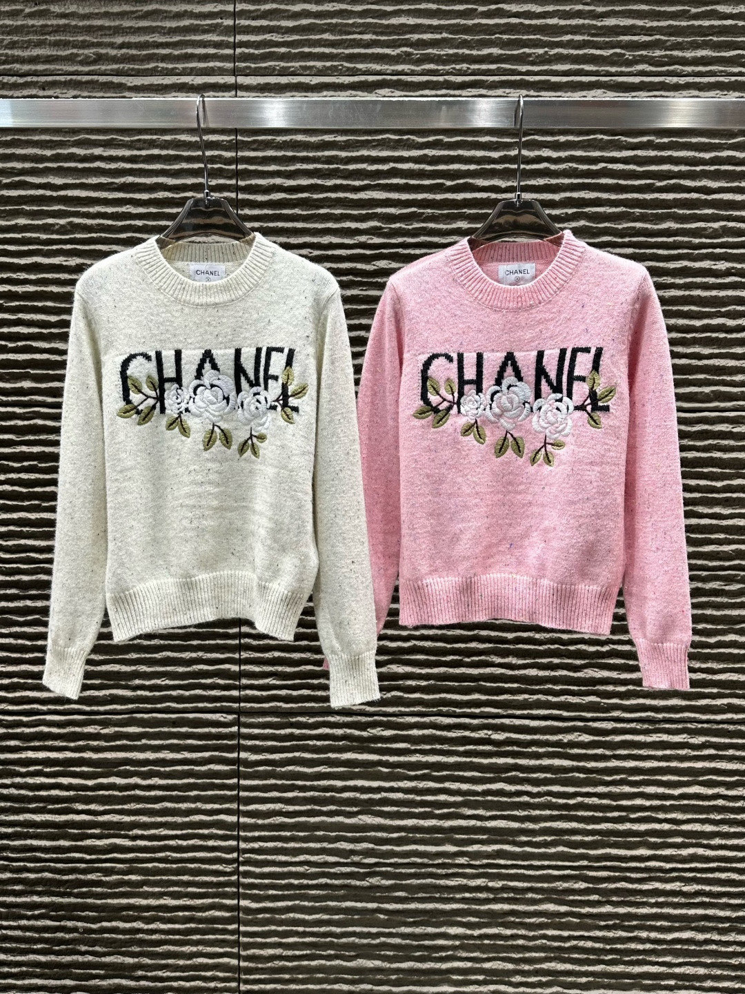 Chanel香奈儿小香字母提花花朵重工刺绣圆领长袖针织毛衣