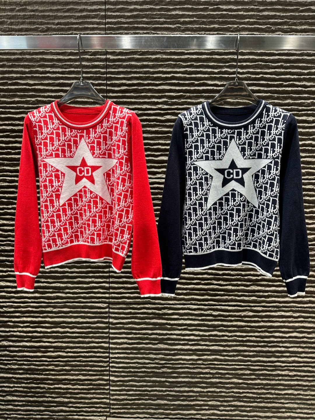 Dior迪奥CD五角星老花提花圆领长袖针织毛衣