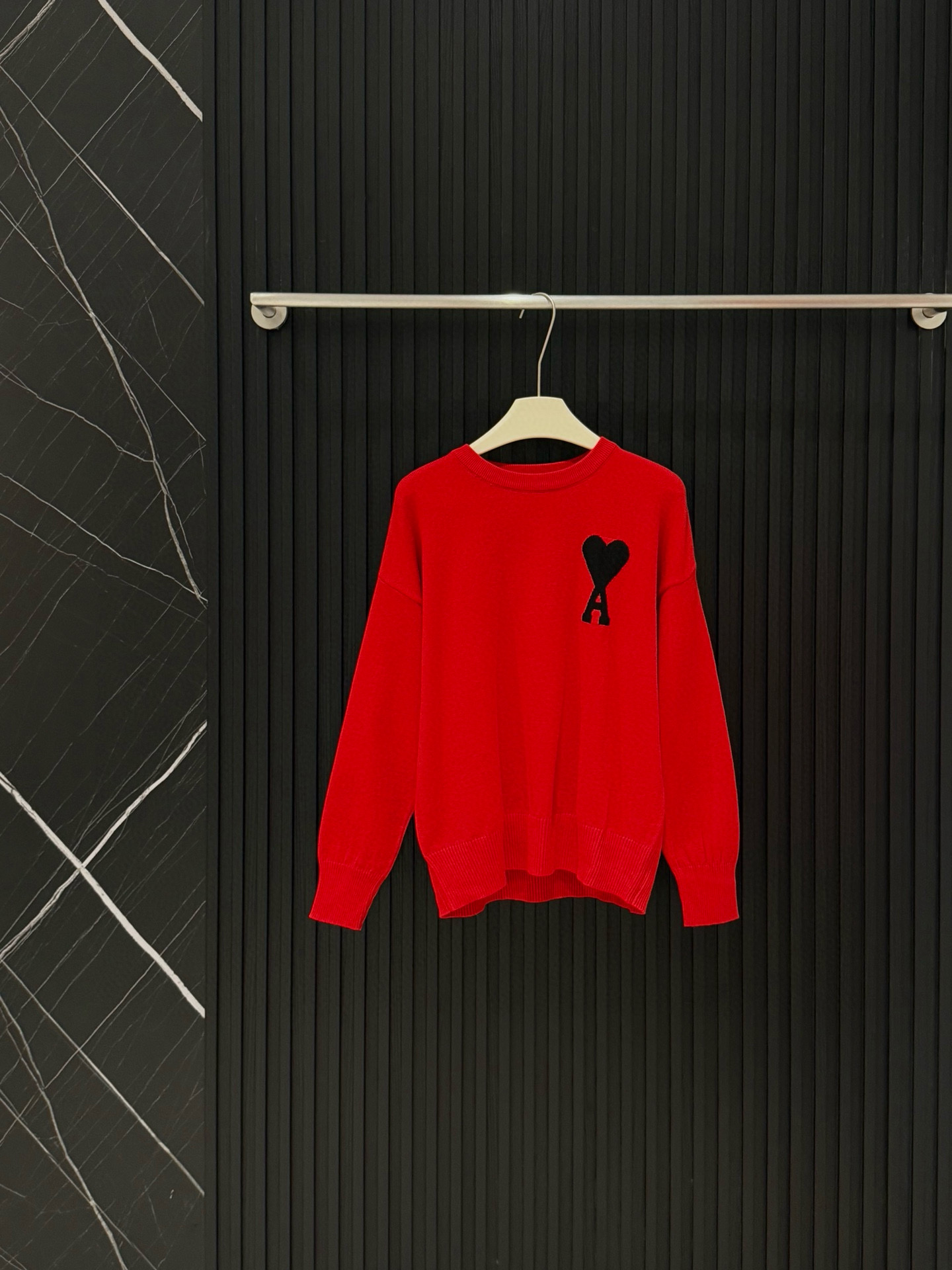 Ami经典A字爱心logo提花圆领长袖针织毛衣