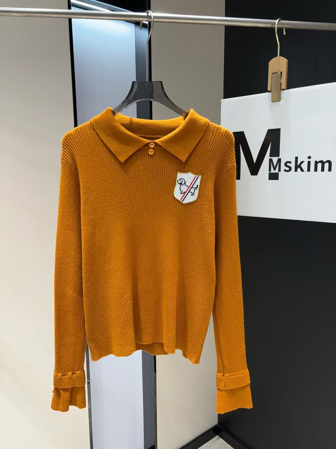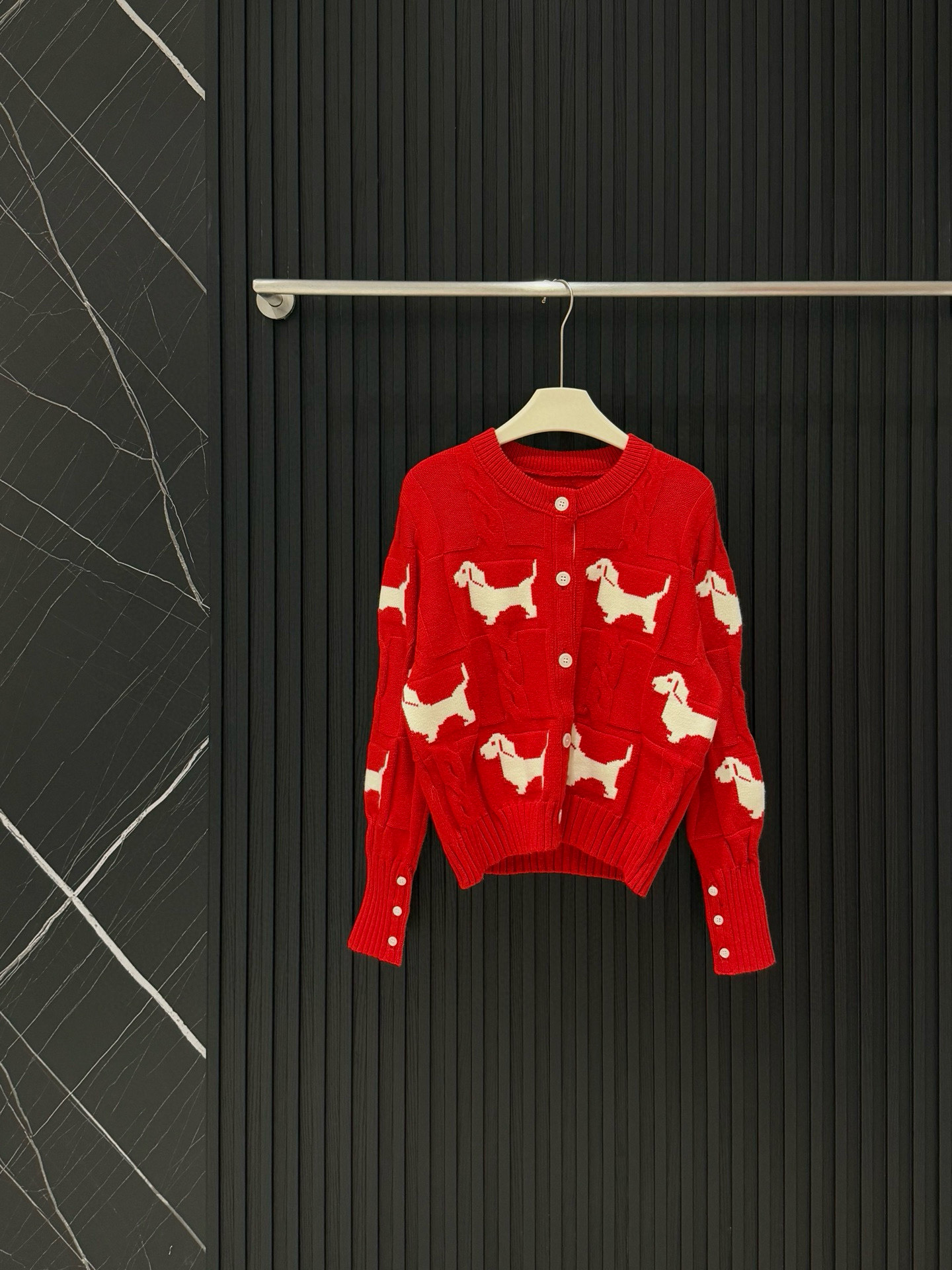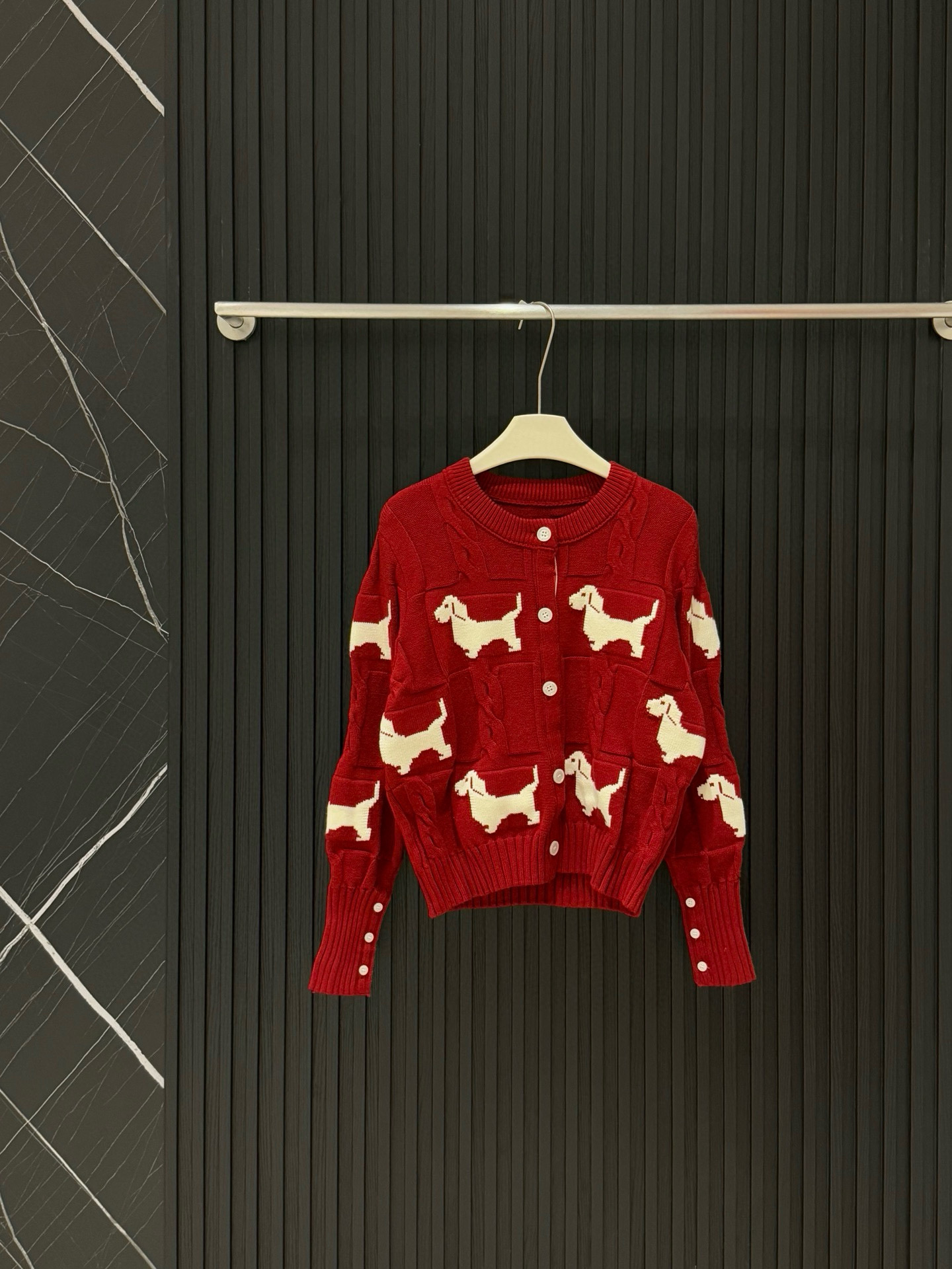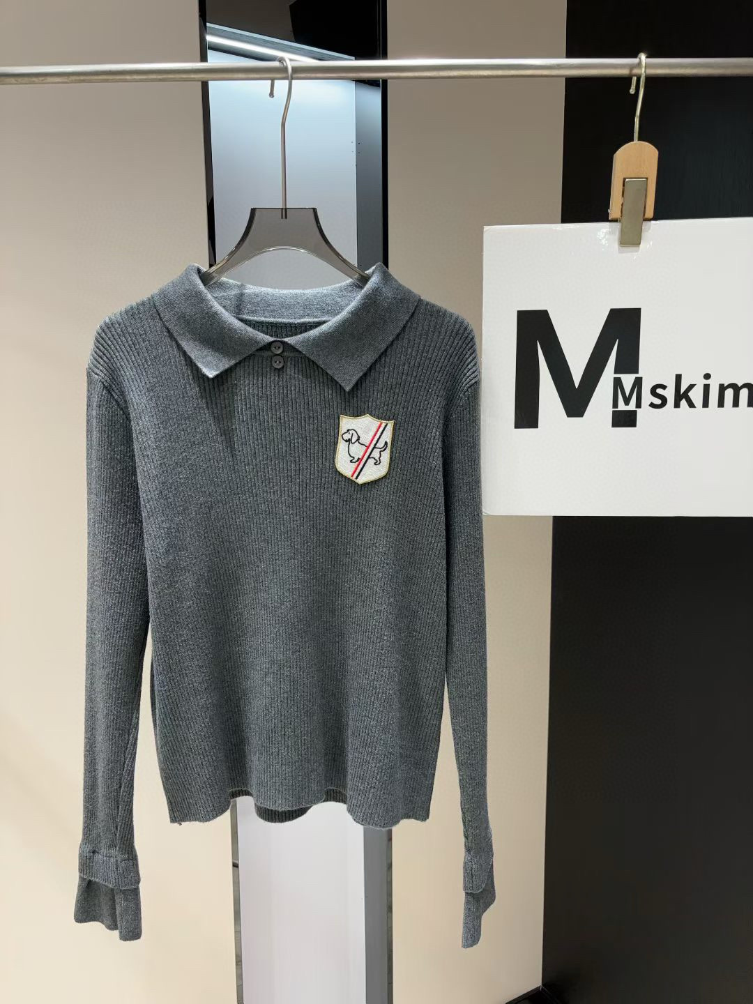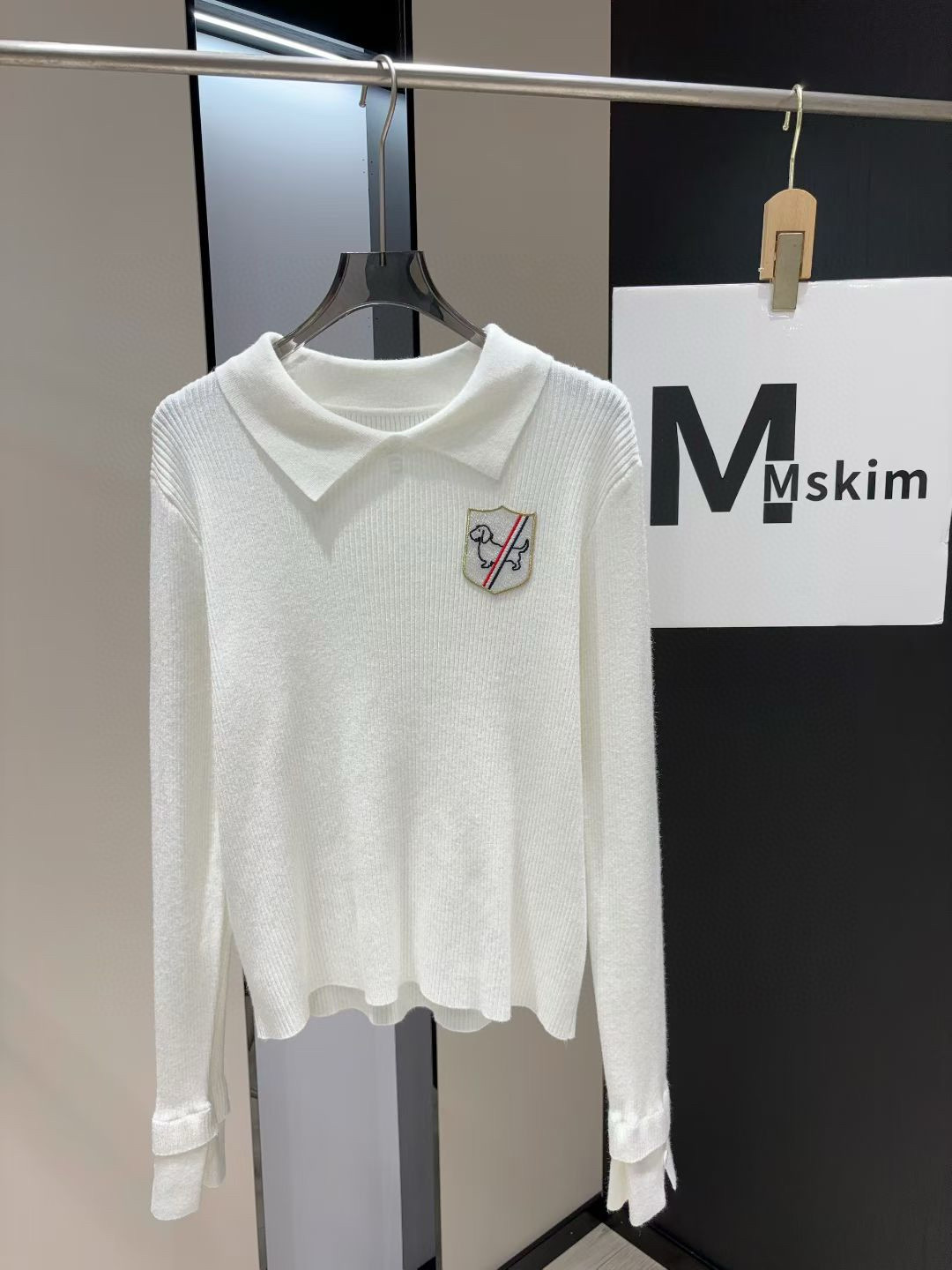 Thom Browne TB小狗刺绣徽章翻领长袖针织毛衣