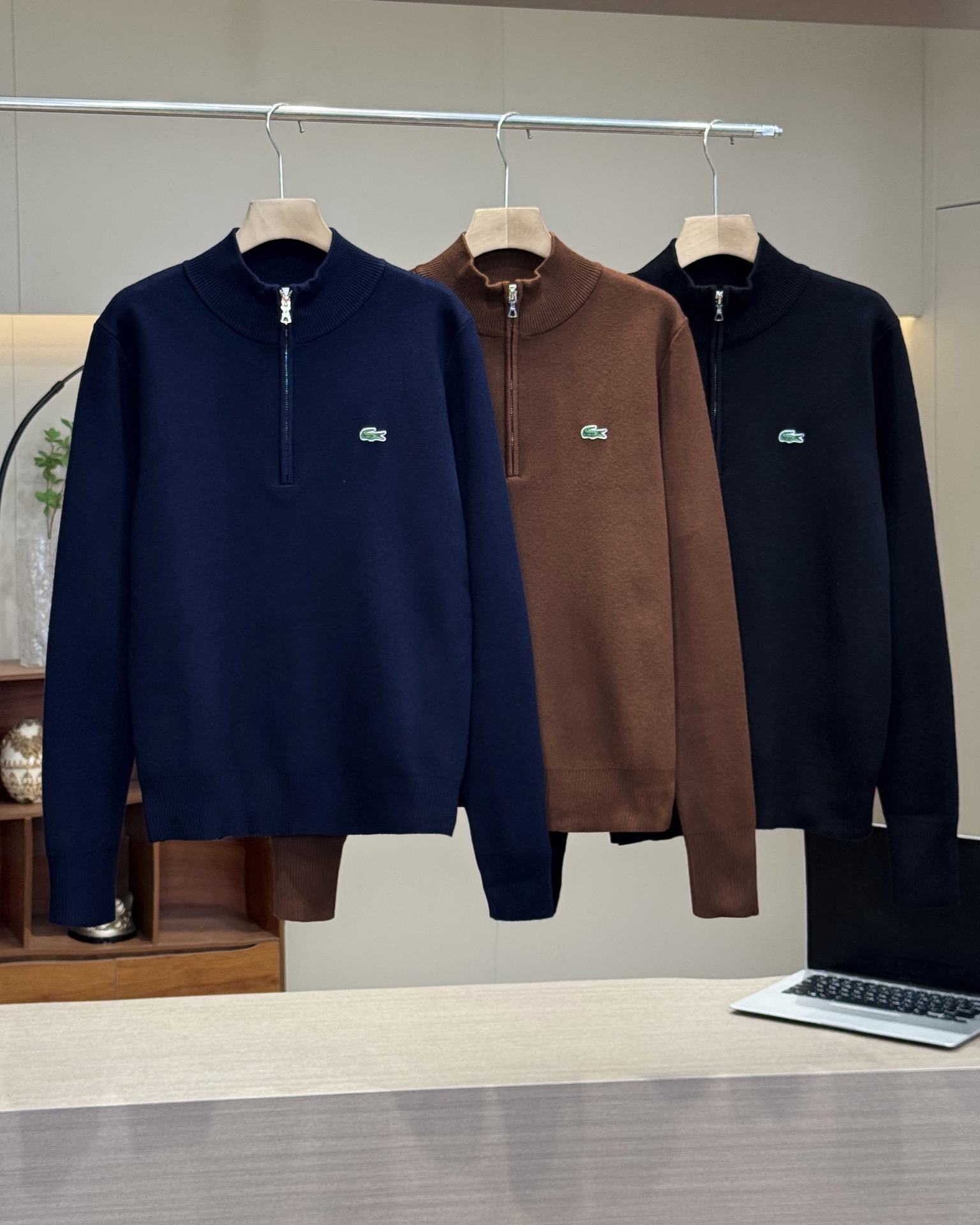 LACOSTE法国鳄鱼男装经典款四分之一拉链针织毛衣 官网新 361725