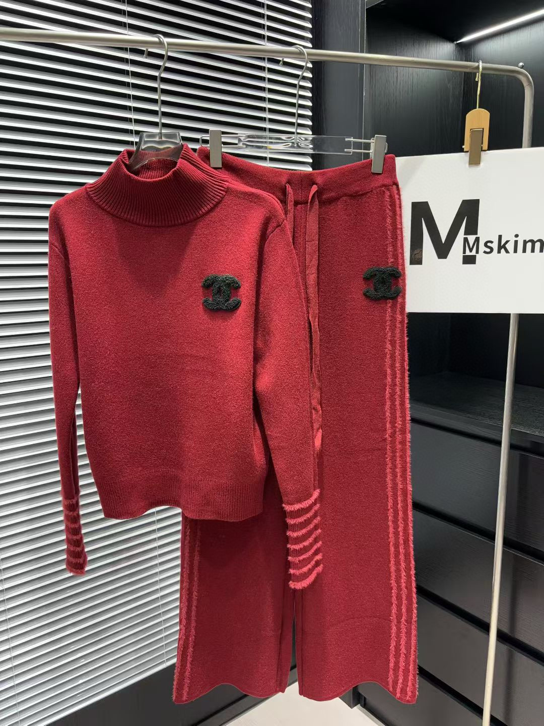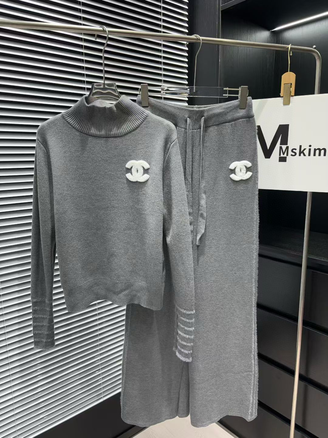 Chanel香奈儿小香双C毛巾绣花加绒高领毛衣抽绳长裤针织套 355129