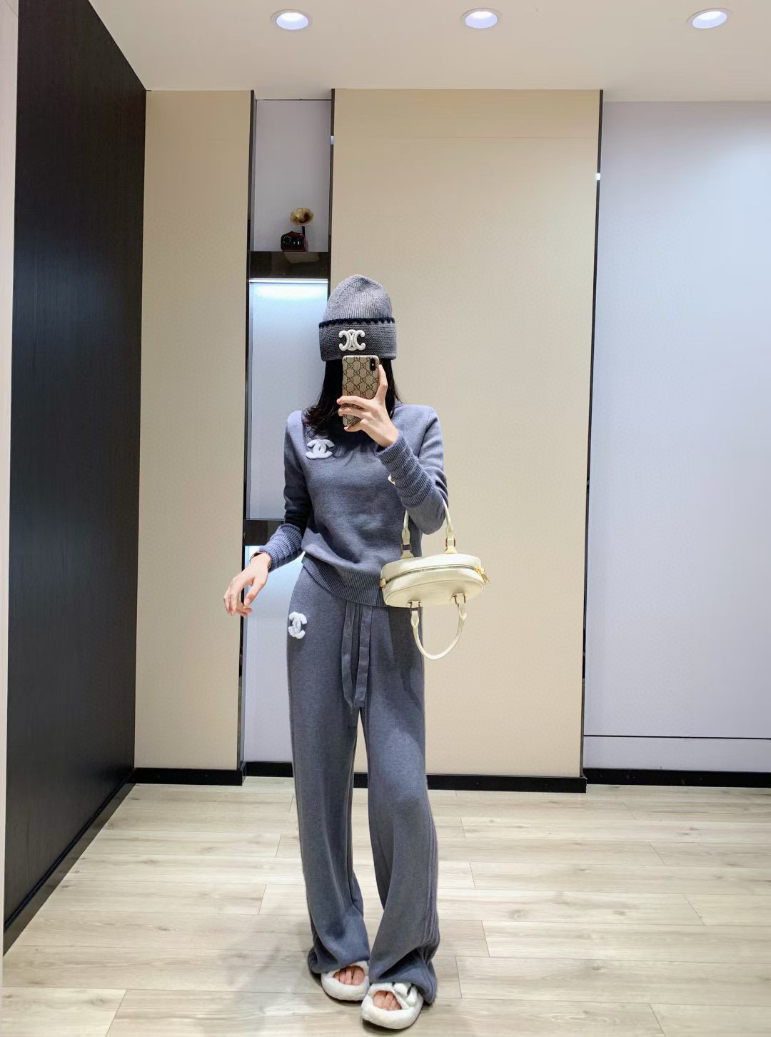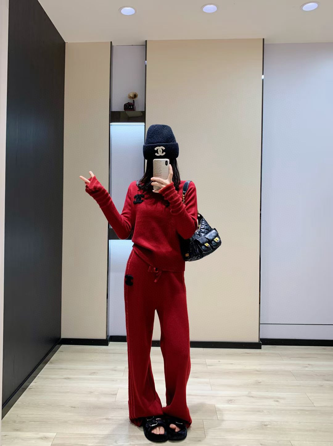 Chanel香奈儿小香双C毛巾绣花加绒高领毛衣抽绳长裤针织套 355131