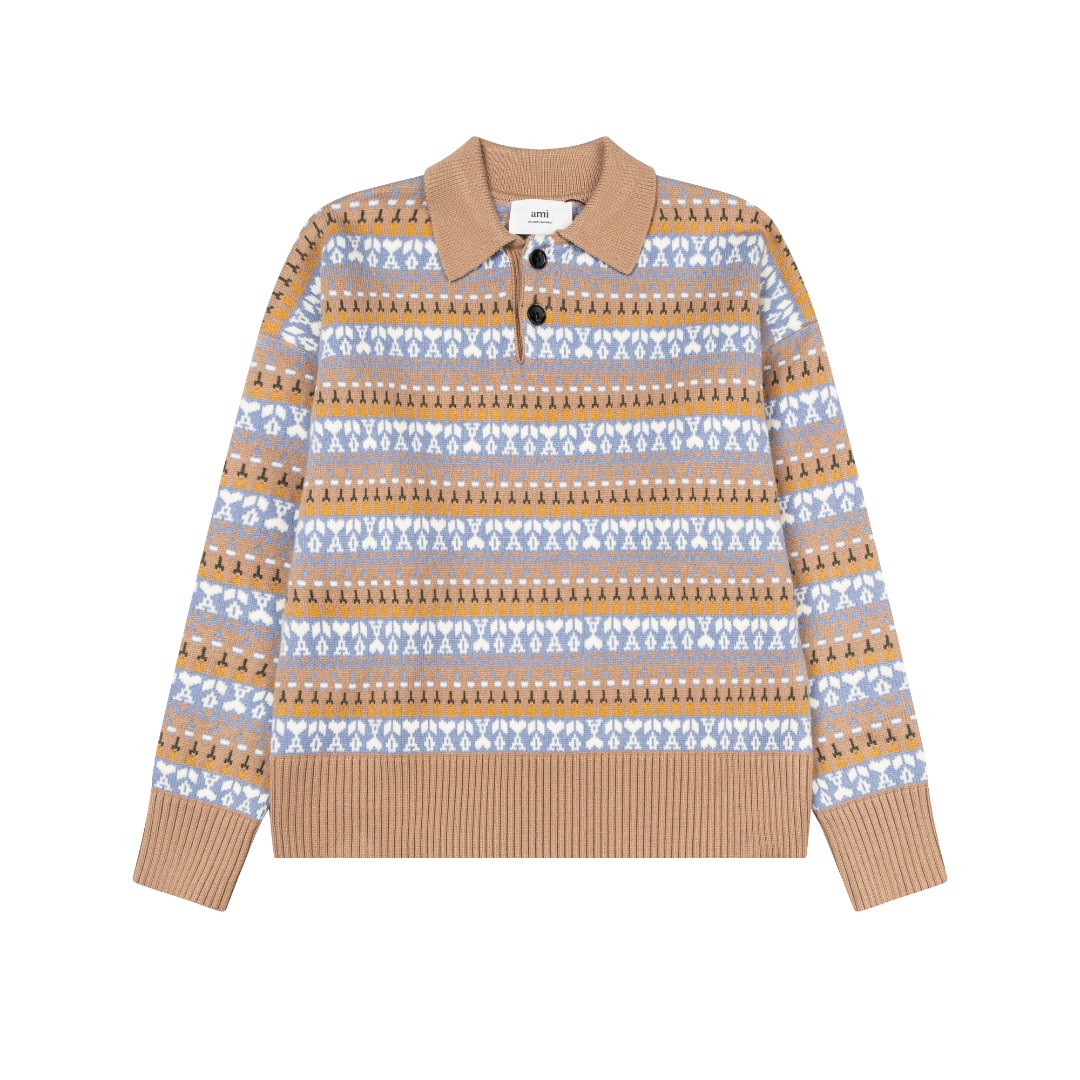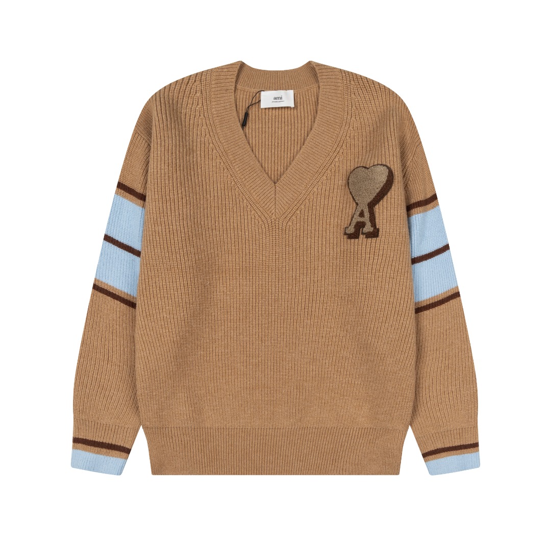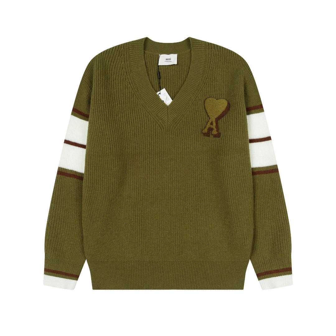 Ami 爱心2025ss条纹针织款毛衣 原版