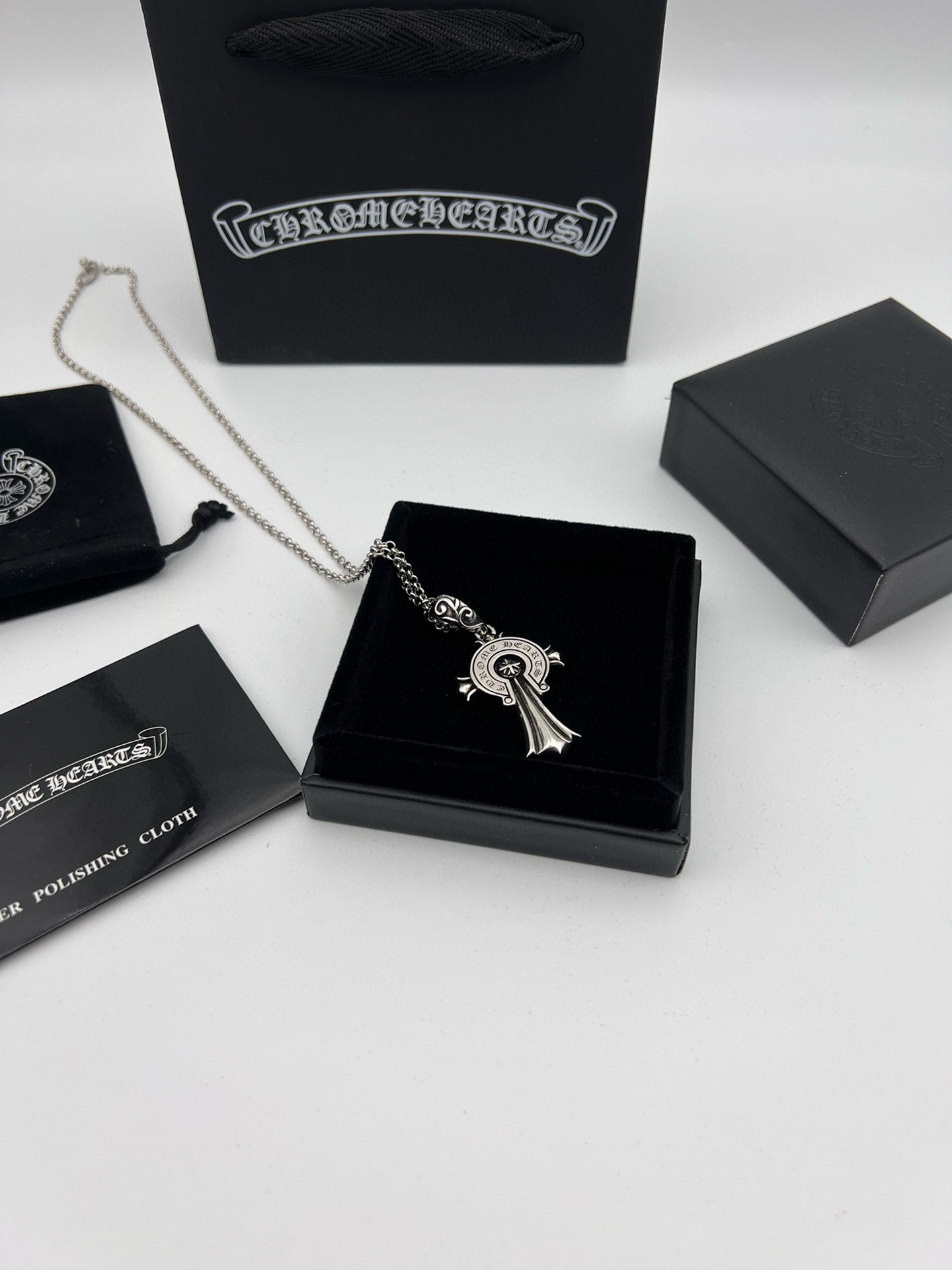 Chrome Hearts克罗心十字架宫廷花方块吊坠项链 配 431267