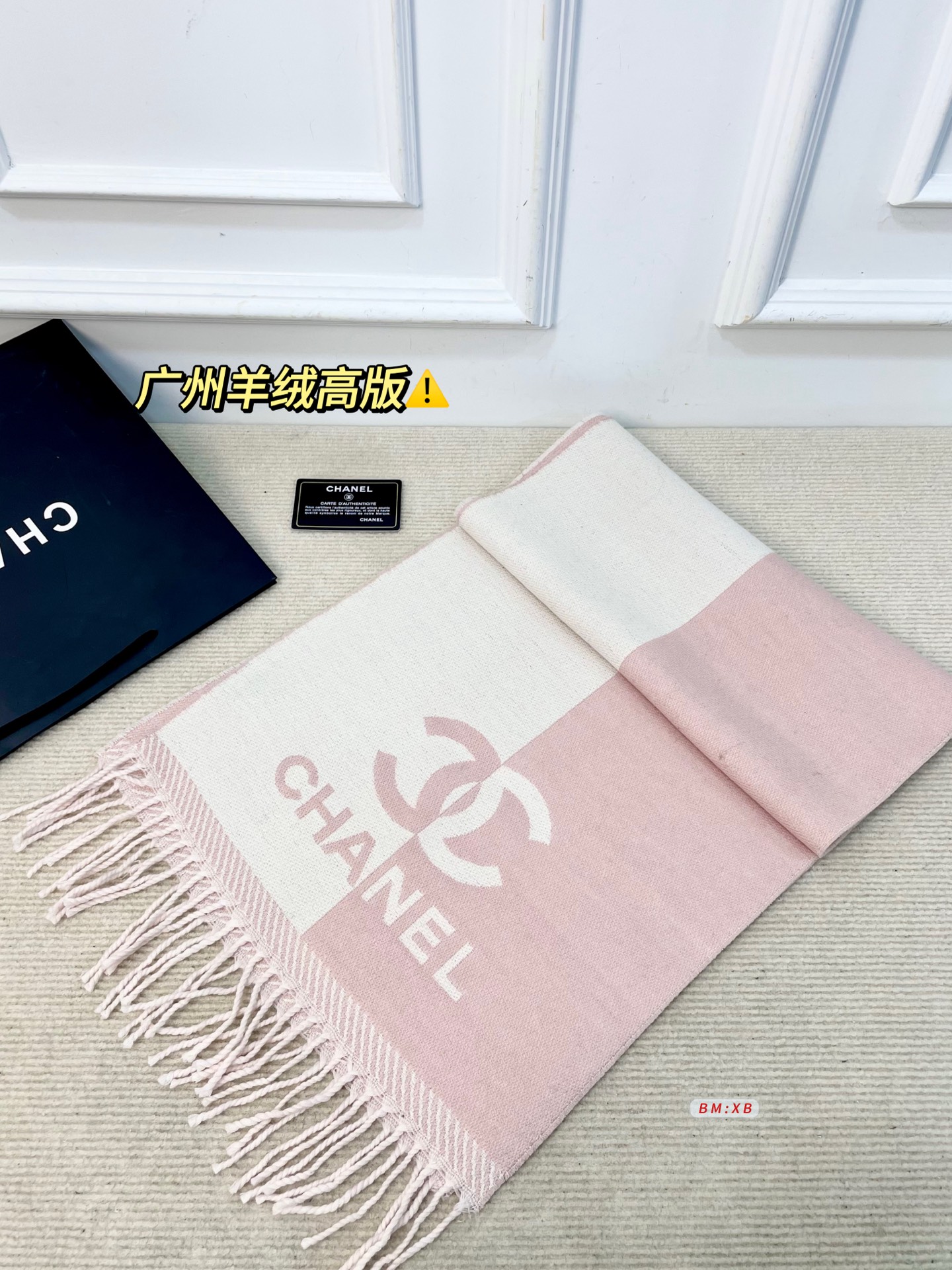 配盒子 香奈儿粉色双拼围巾 采用高品质羊绒 手感超柔软 保暖 430971