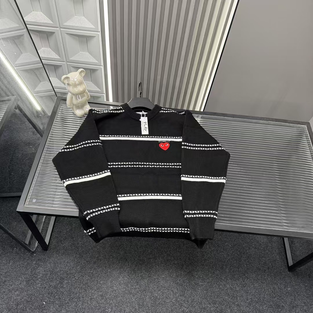 秋冬爆款热销款推荐川久保玲针织毛衣 条纹拼接式胸前爱心图案 432933