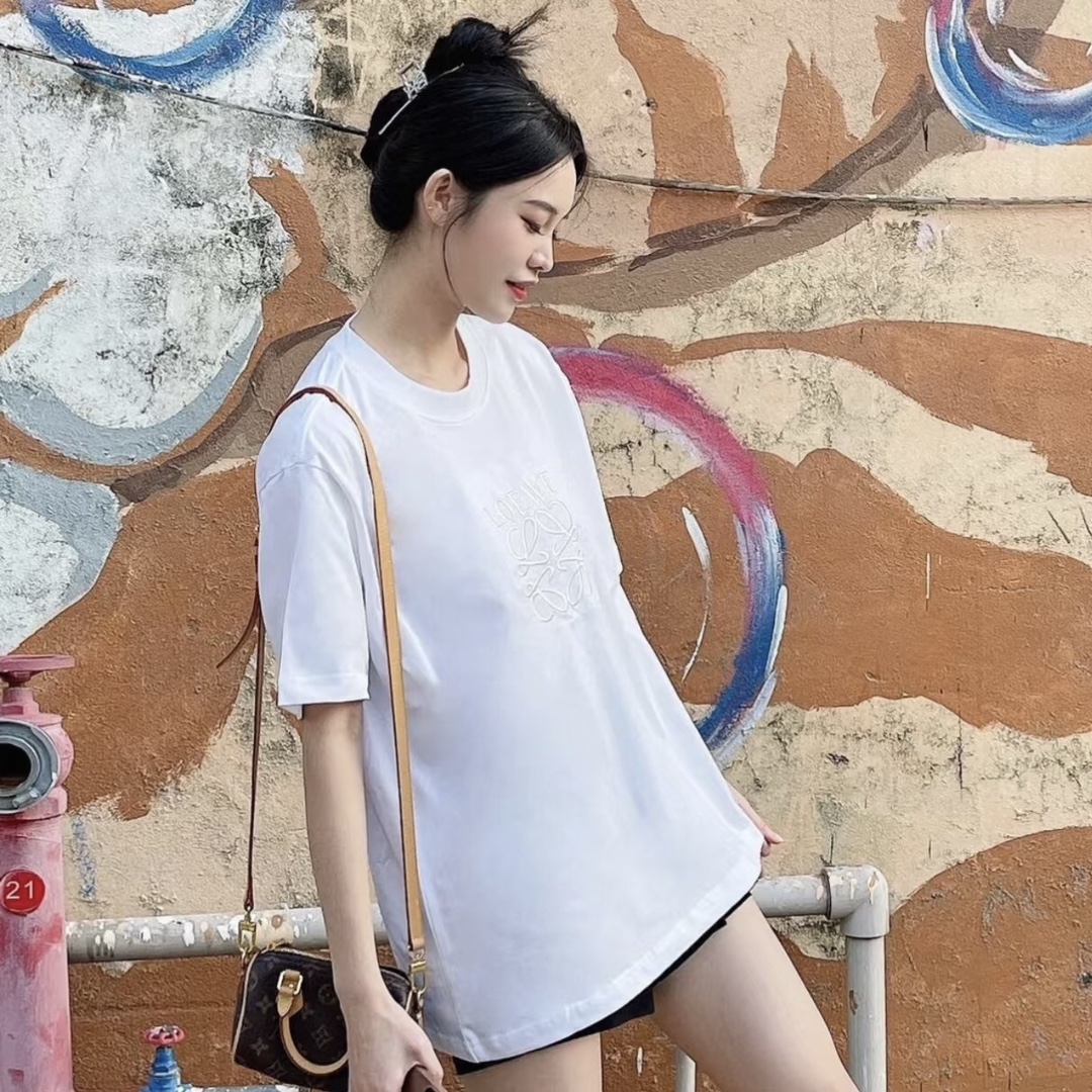 上身图 罗意威 胸前刺绣款 经典圆领短袖T恤 426402