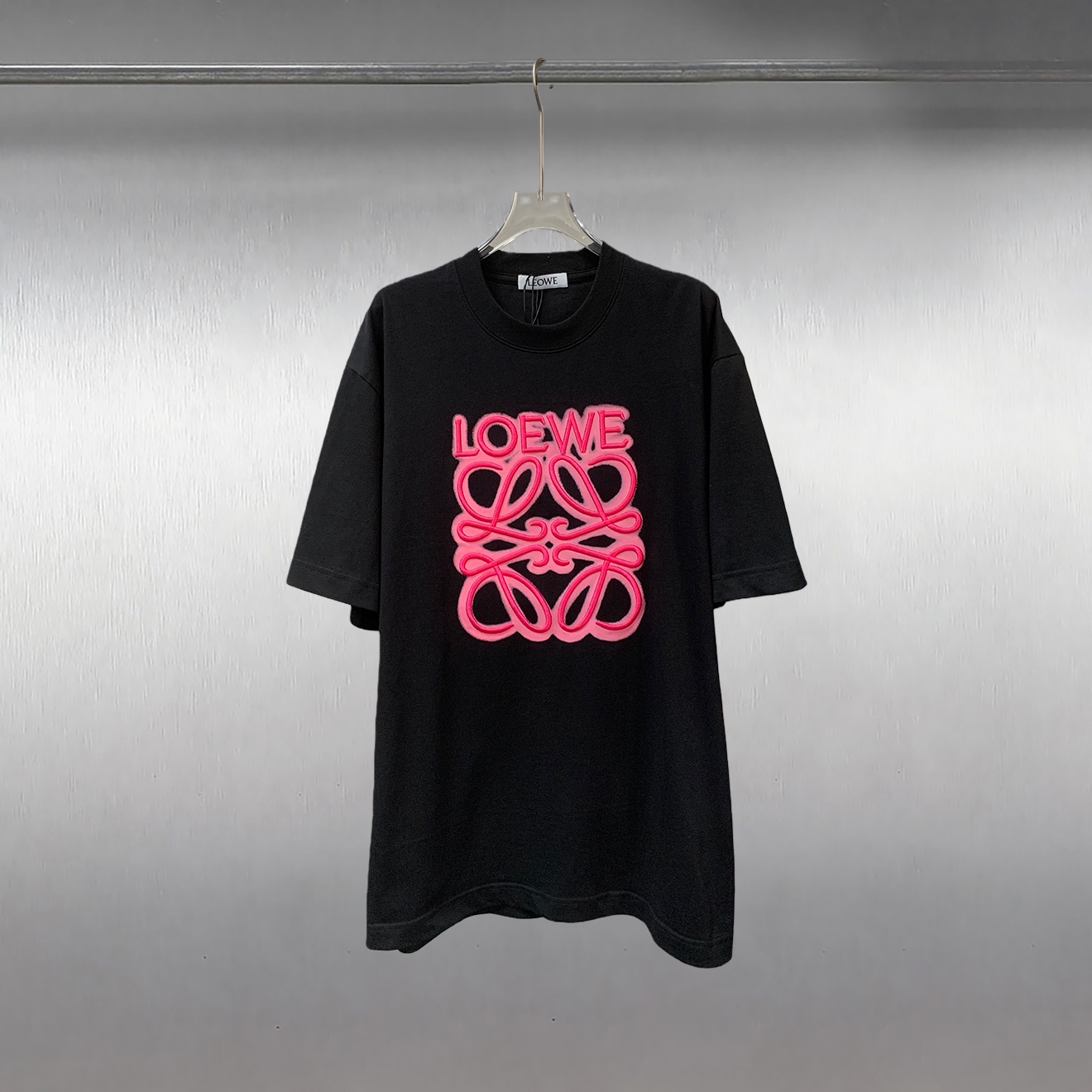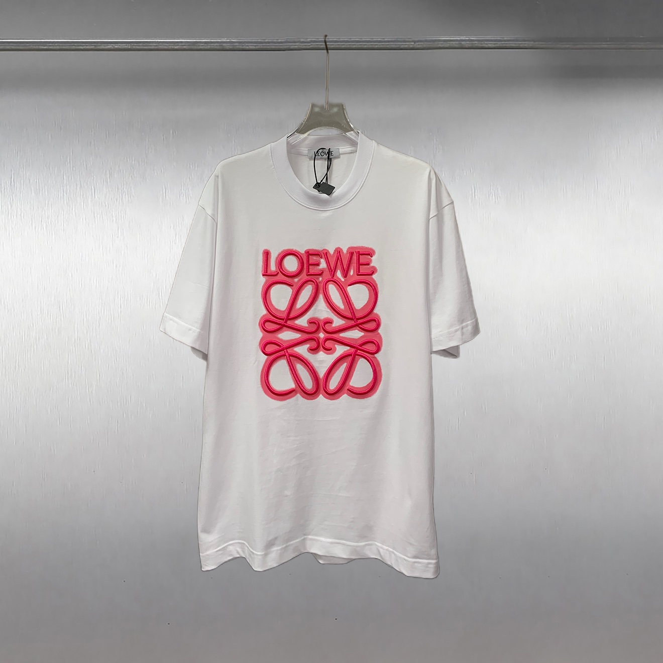 罗意威泼墨粉色刺绣大标圆领短袖