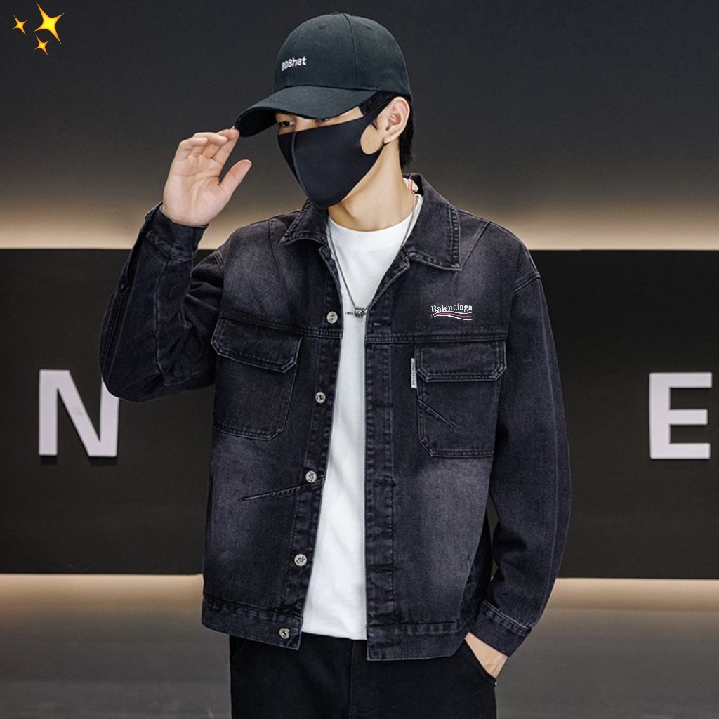 巴黎世家BALENGIA新品牛仔夹克外套翻领工装牛仔衣外套
