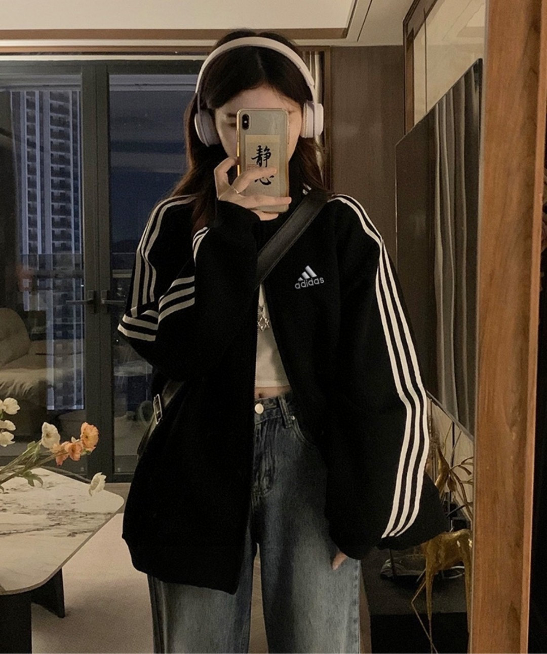 原版质量 新款阿迪达斯Adidas美式黑色三条杠开衫卫衣情侣 389430