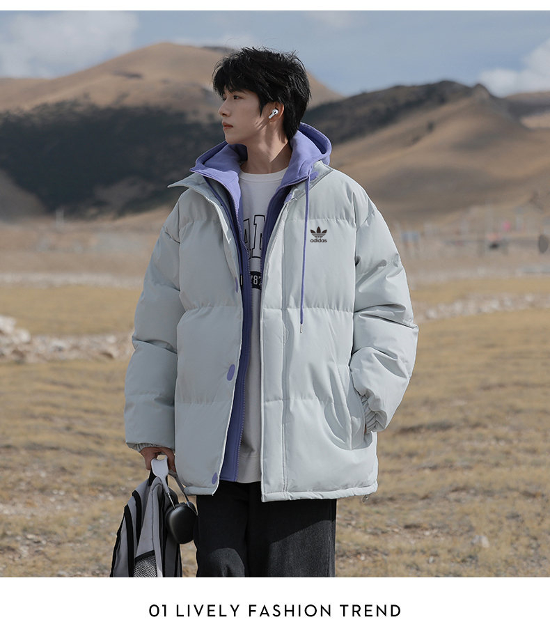 大朵白鸭绒阿迪达斯Adidas拼色羽绒服加厚冬季宽松面包服韩 335864