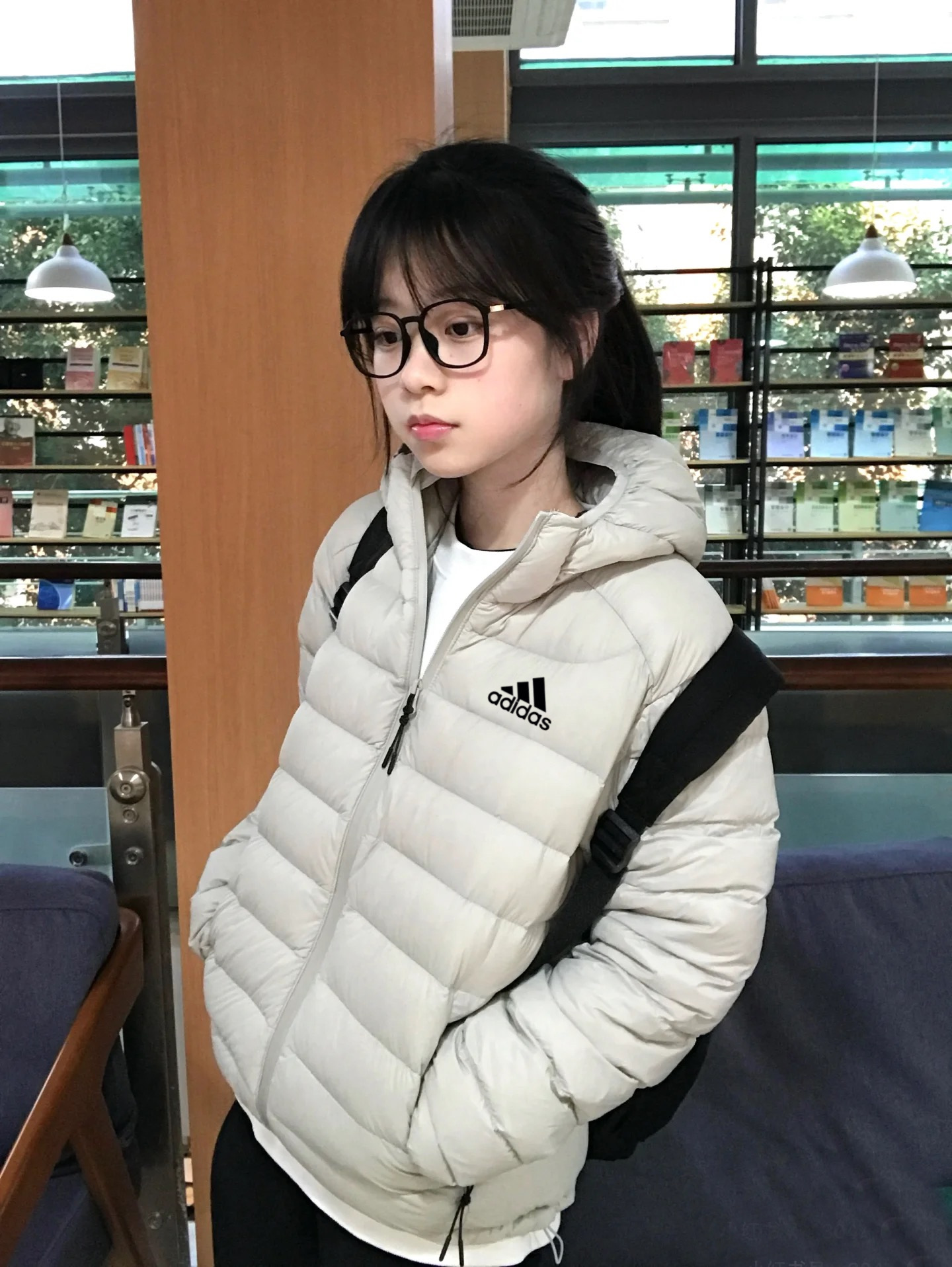 白鸭绒奶茶咖色美式阿迪达斯Adidas连帽羽绒服加厚面包服 335860