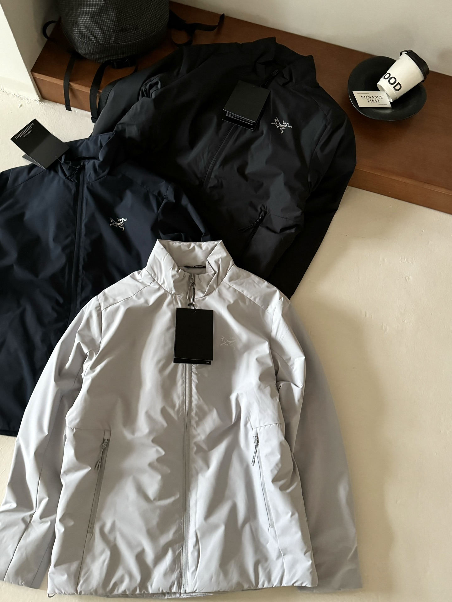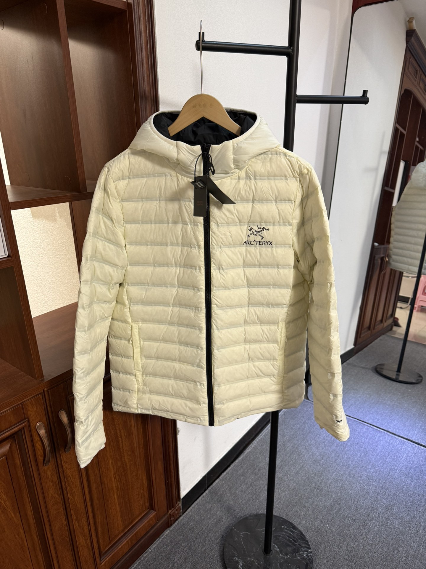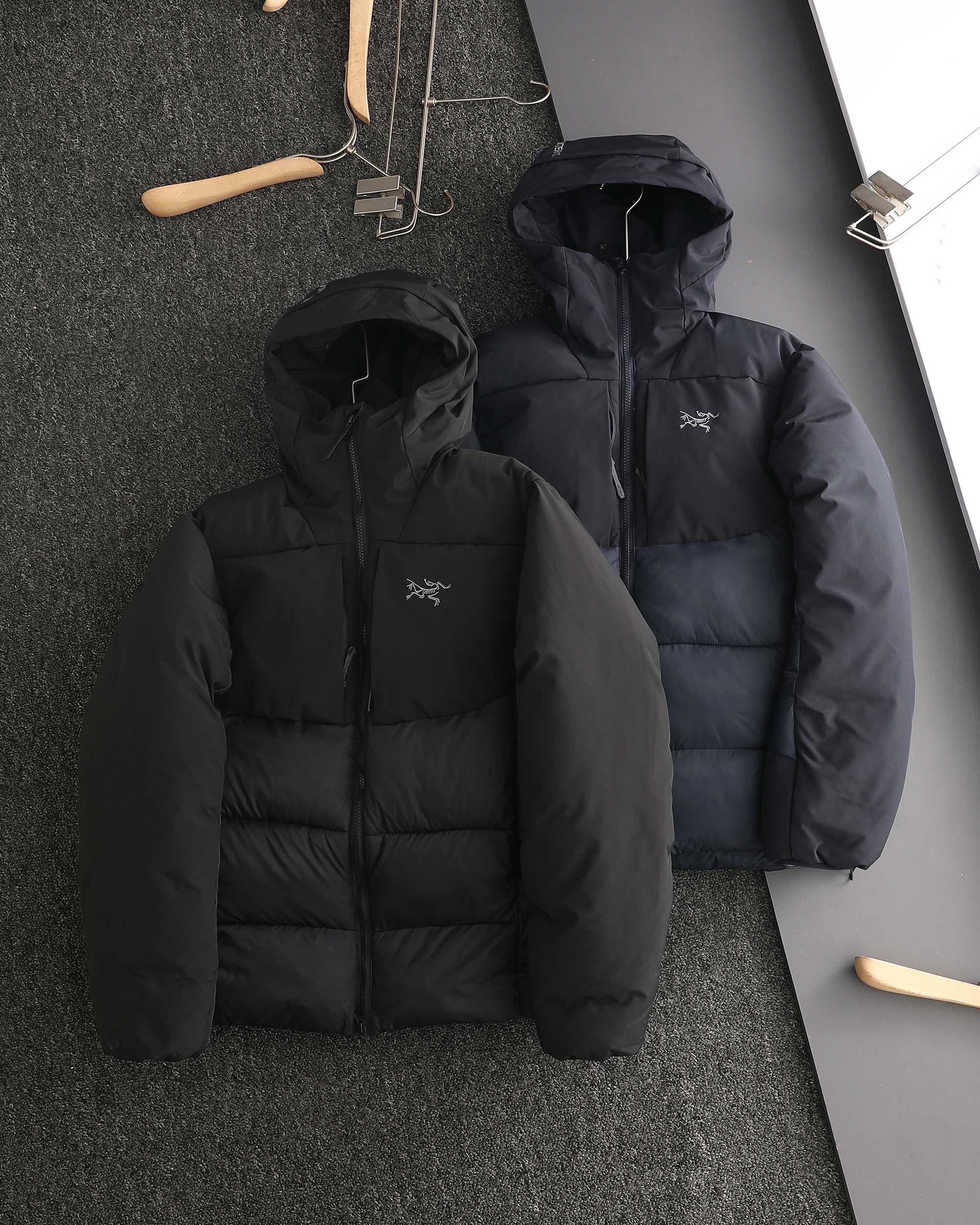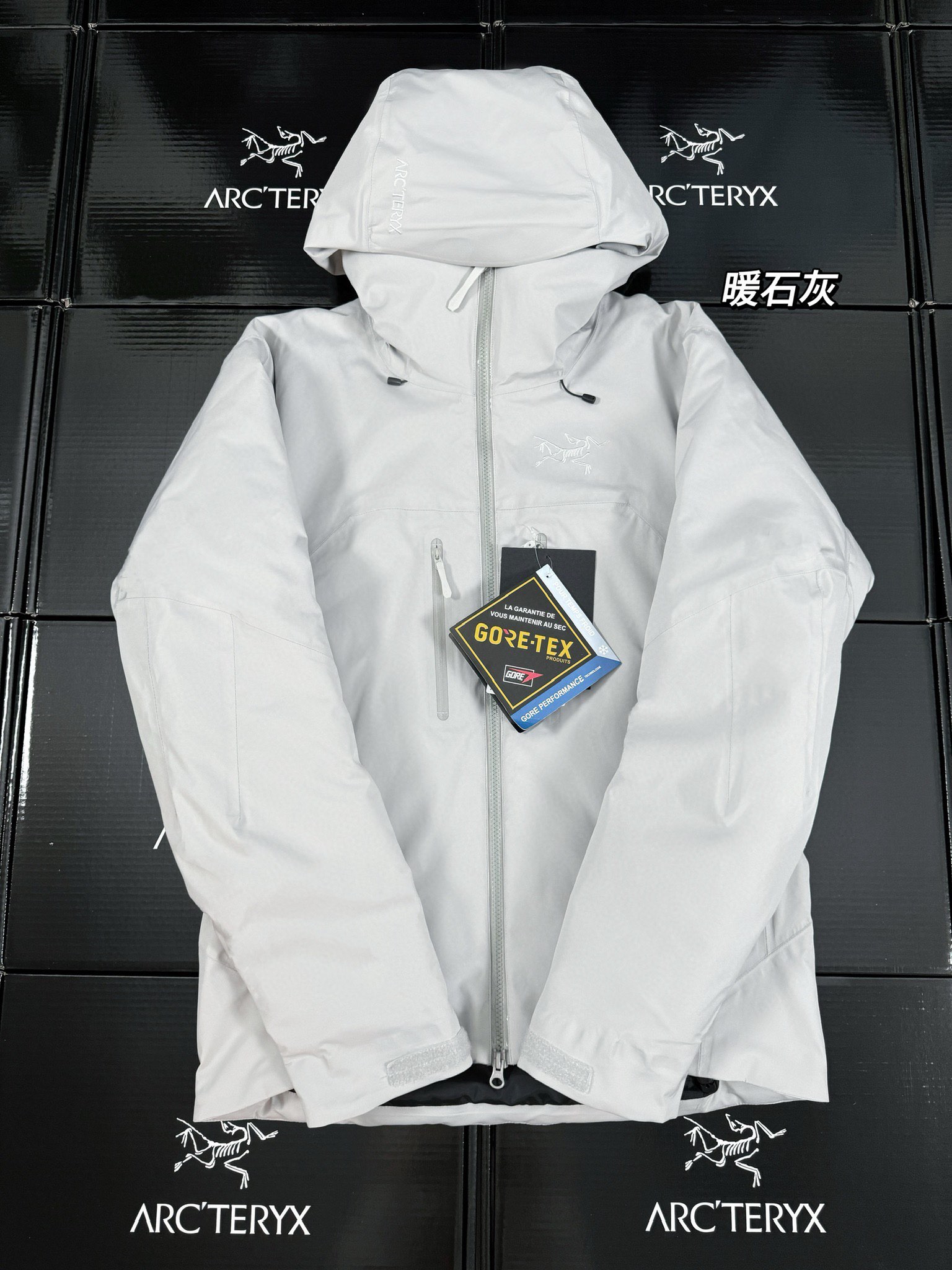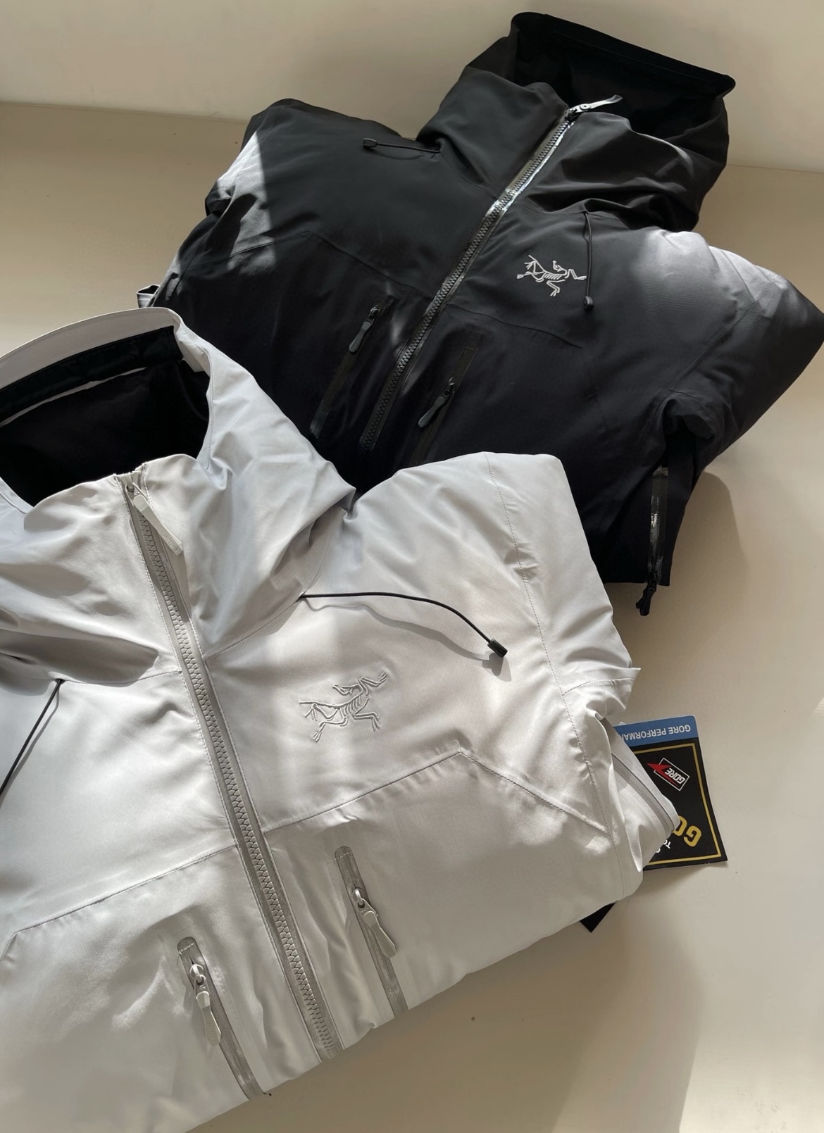 始祖鸟双面穿米白色 黑色 硅胶标羽绒服顶级品质