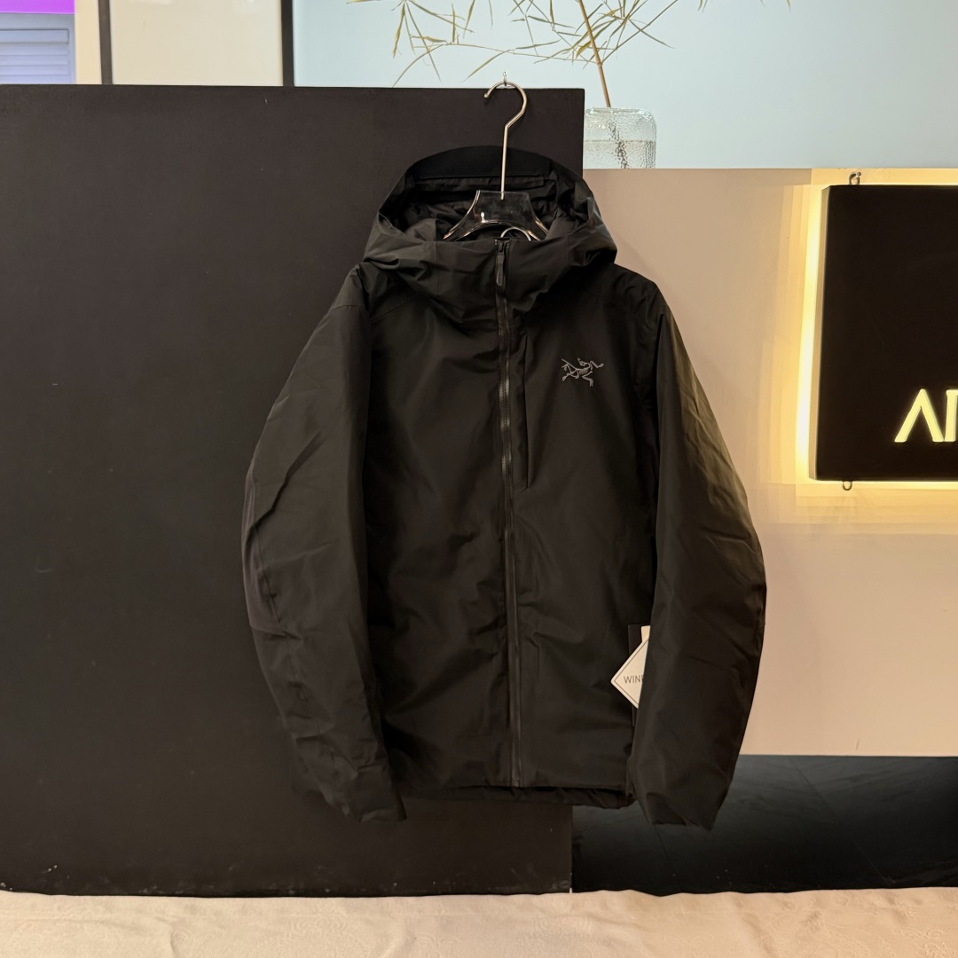 始祖鸟男士秋冬款刺绣logo连帽轻薄款羽绒服外套 防水防风防 347173