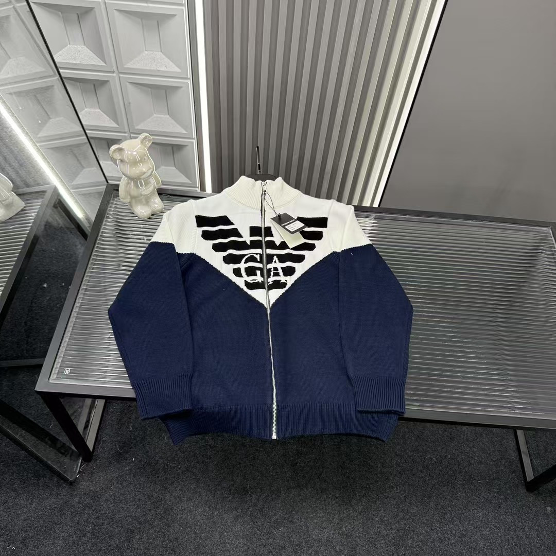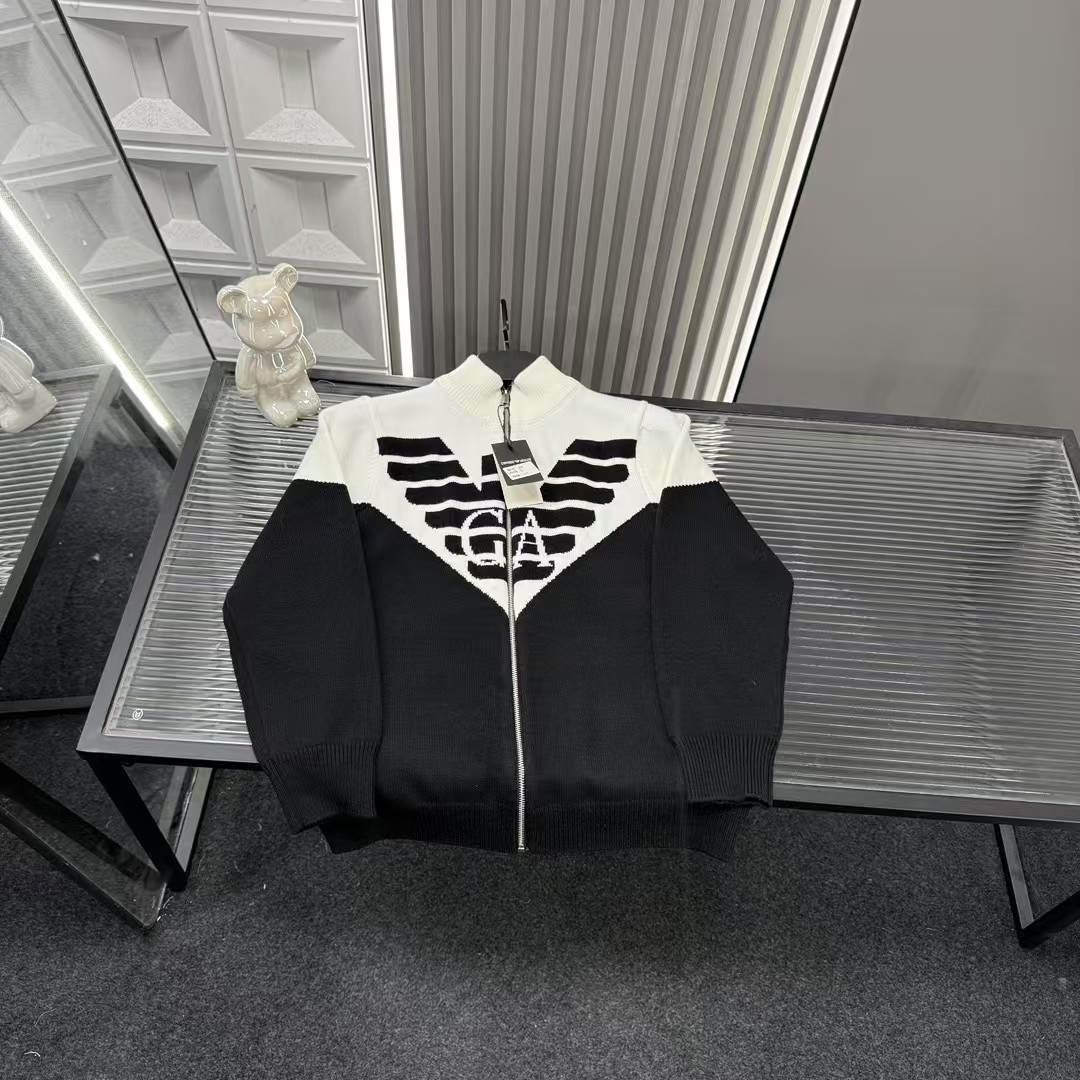 秋冬爆款热销款推荐Ea7阿玛尼针织开衫外套 拼接撞色胸前老鹰 423413