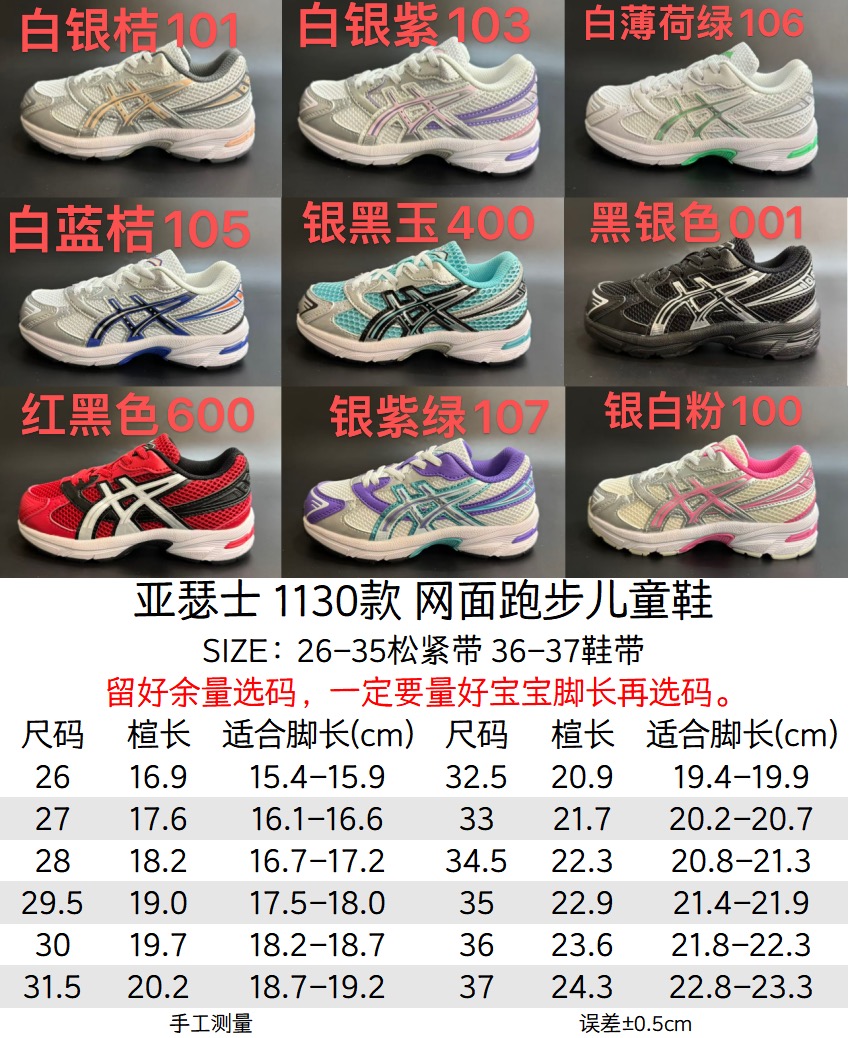 亚瑟士官网新款1130弹力松紧带儿童复古休闲运动鞋