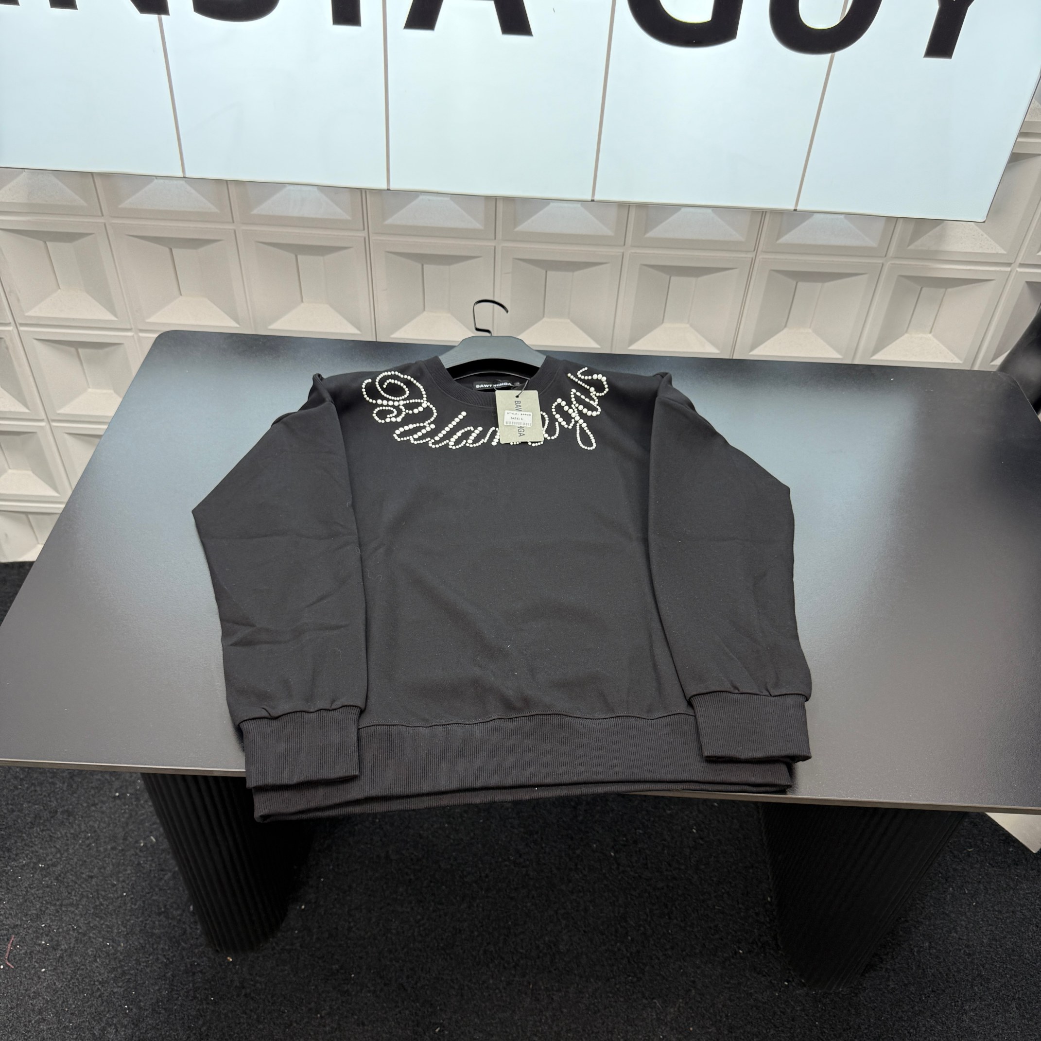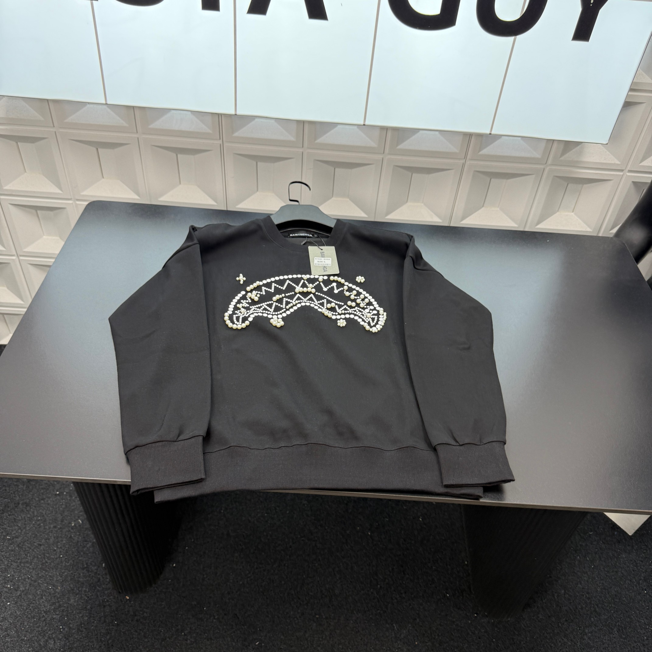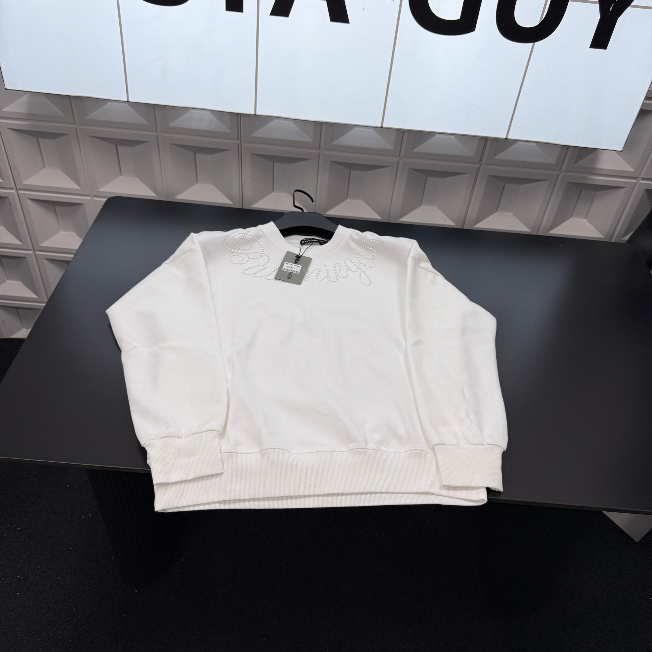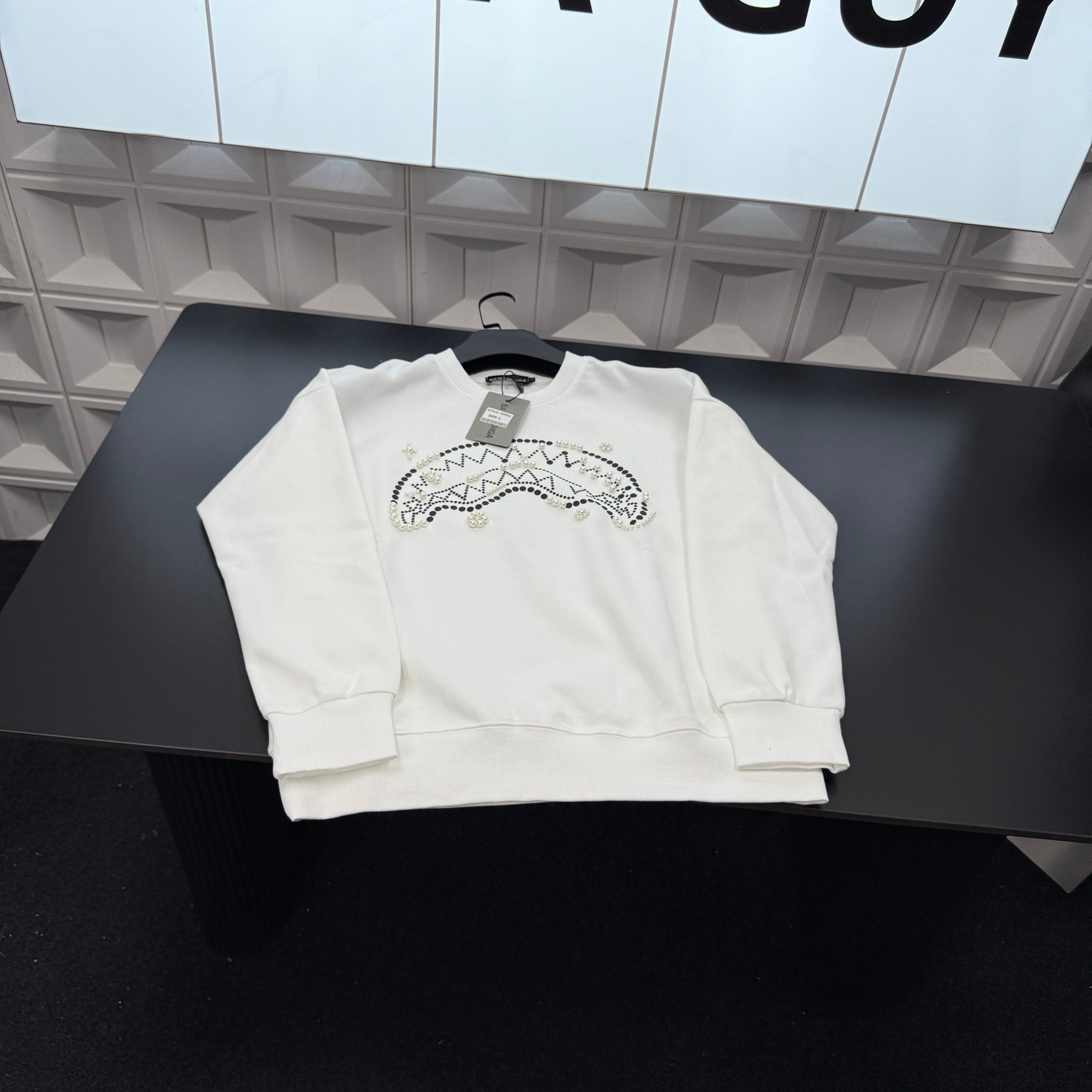 冬季热销爆款网红博主推荐款巴黎世家加绒圆领卫衣 珍珠钉珠字母 412188