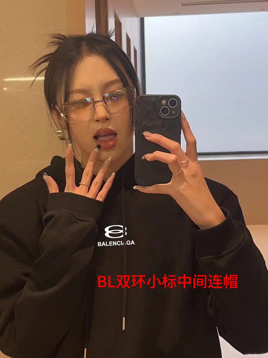 BL双B蓝黑大标连帽