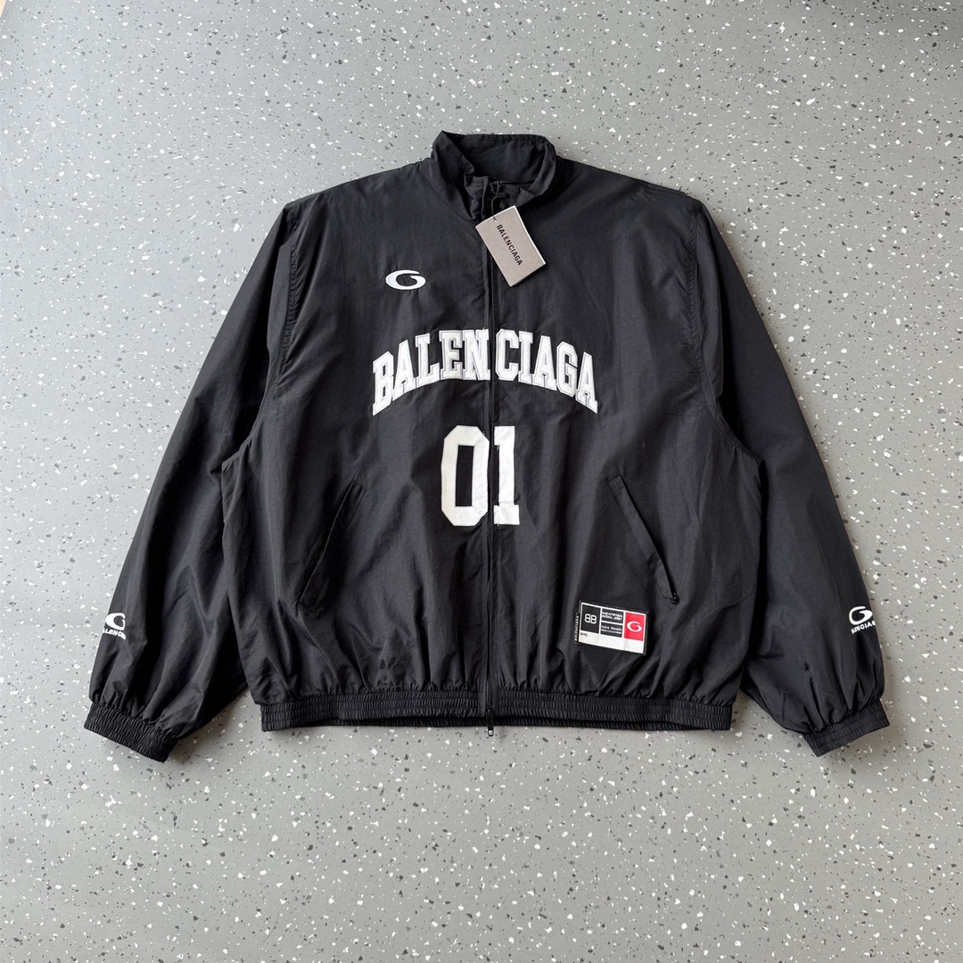 BALENCIAGA巴黎世家25秋季字母刺绣假两件翻领棒球服 320404