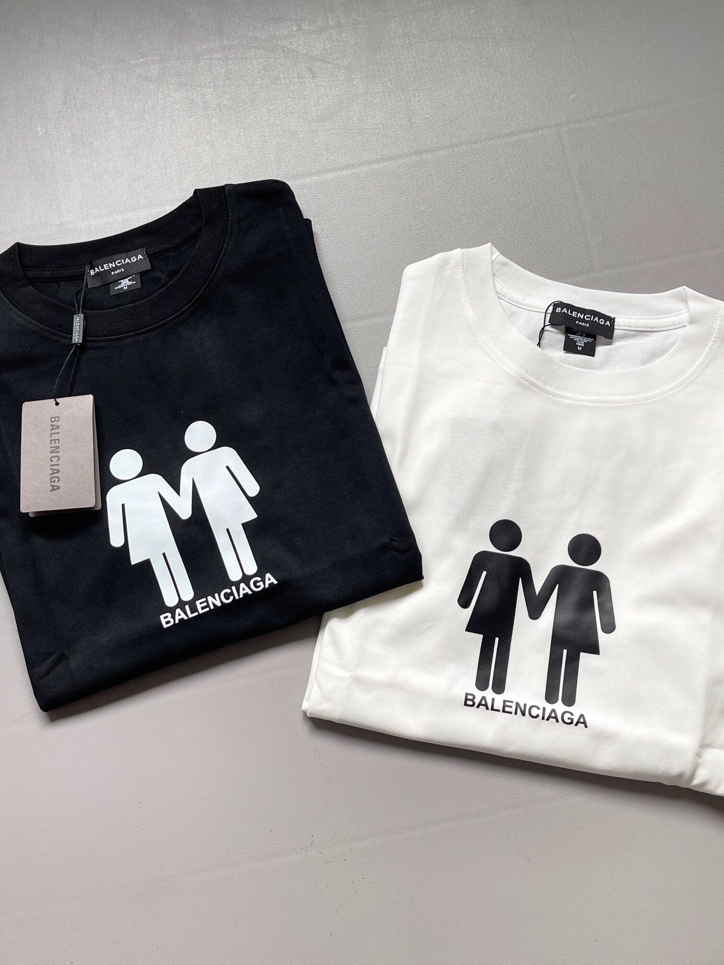 巴黎世家 双人前后印花T恤 双生花