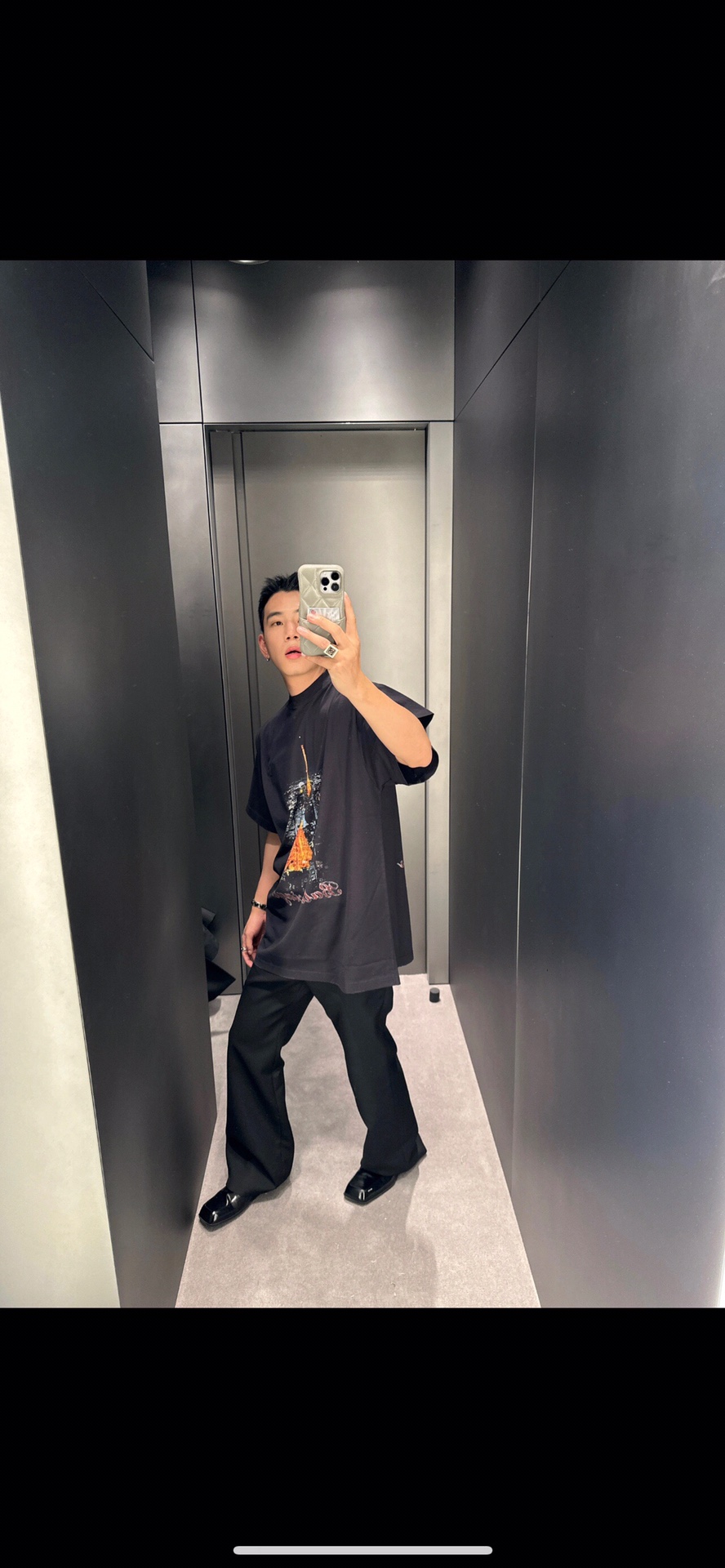 巴黎世家字母前后印花T恤 浅影
