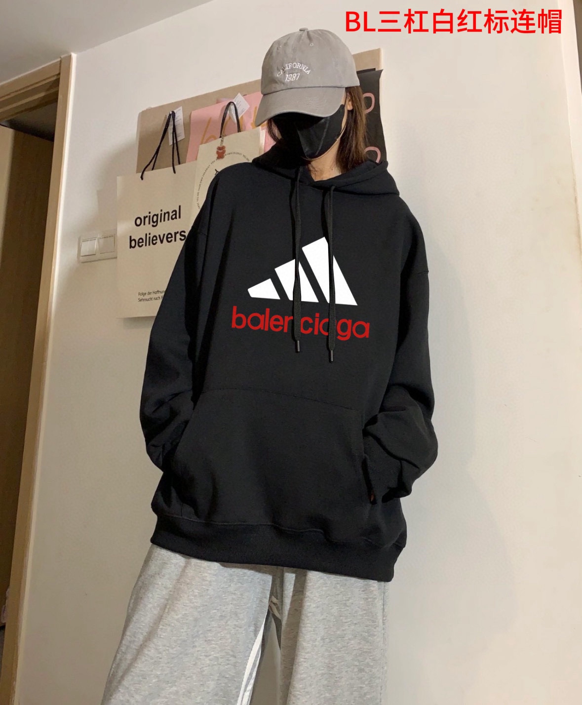 BL三杠白红标连帽