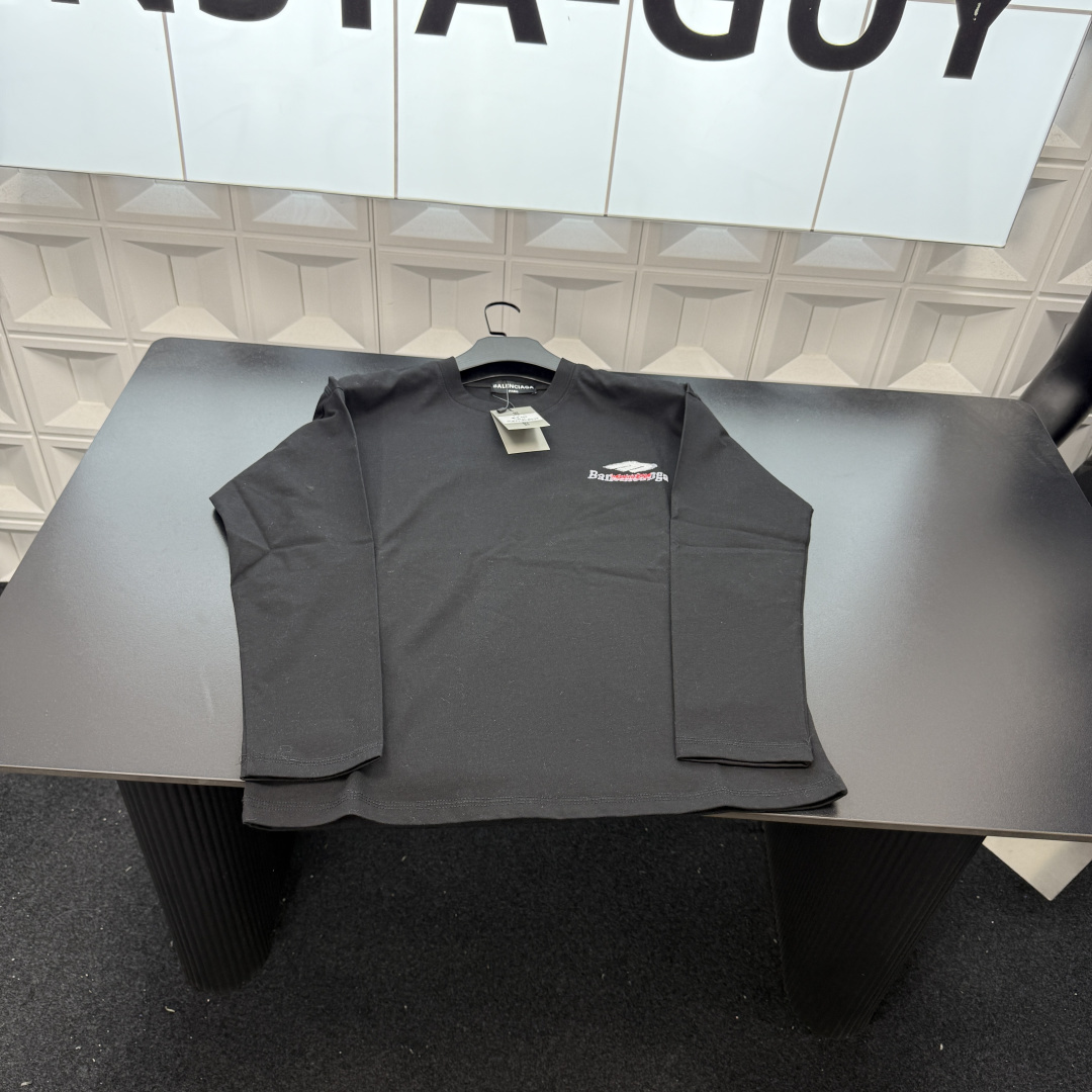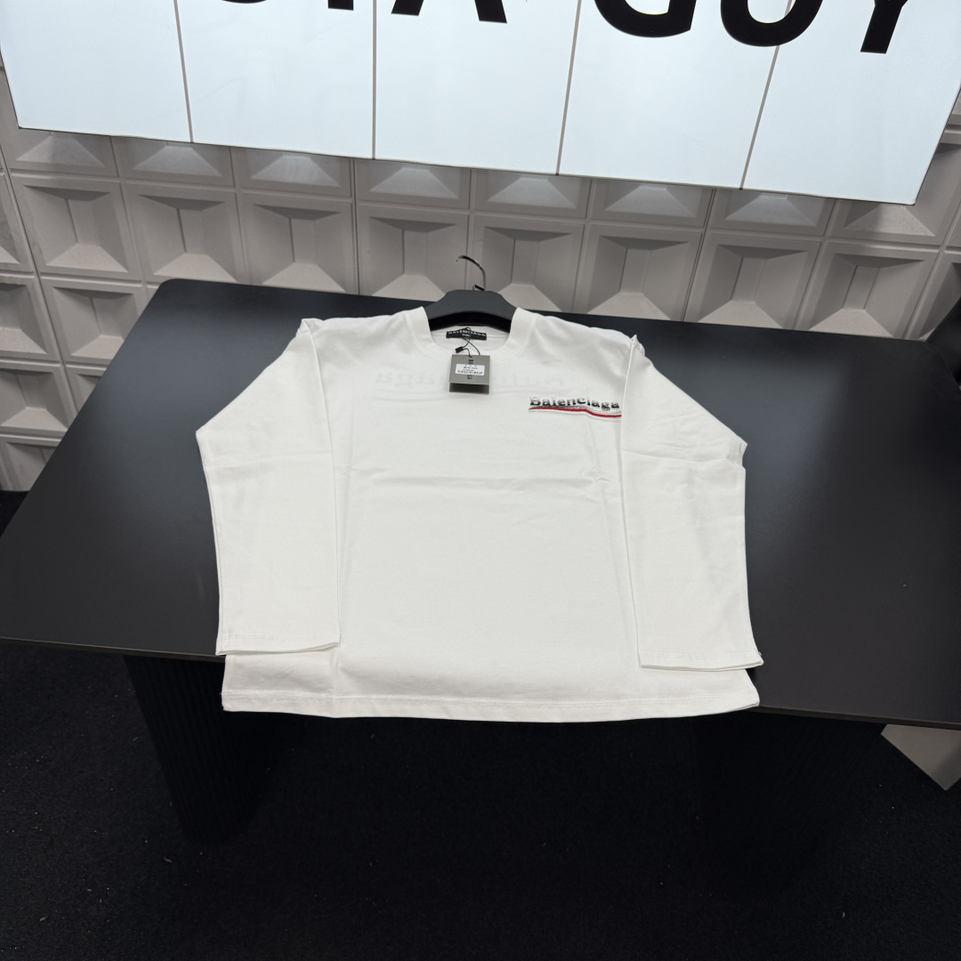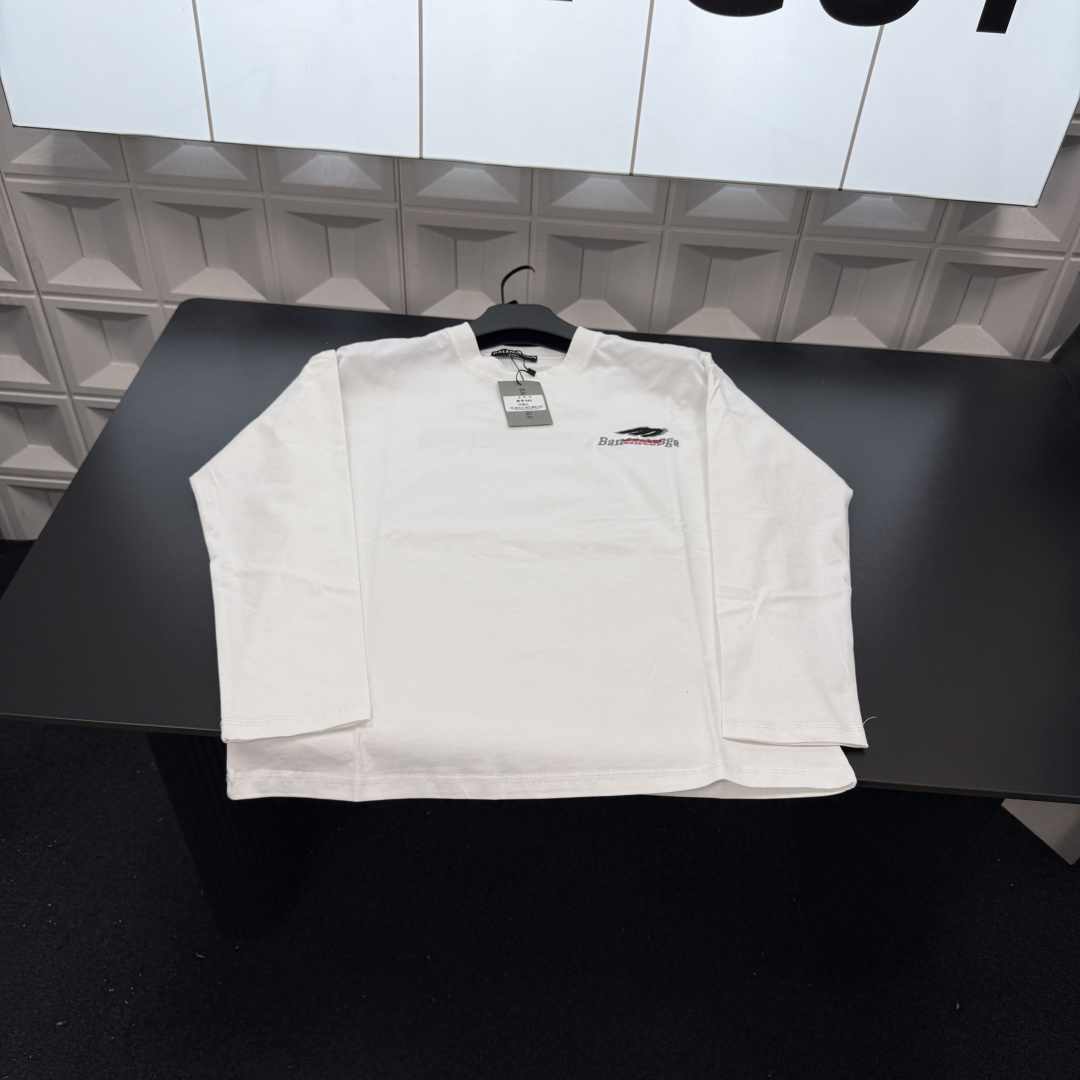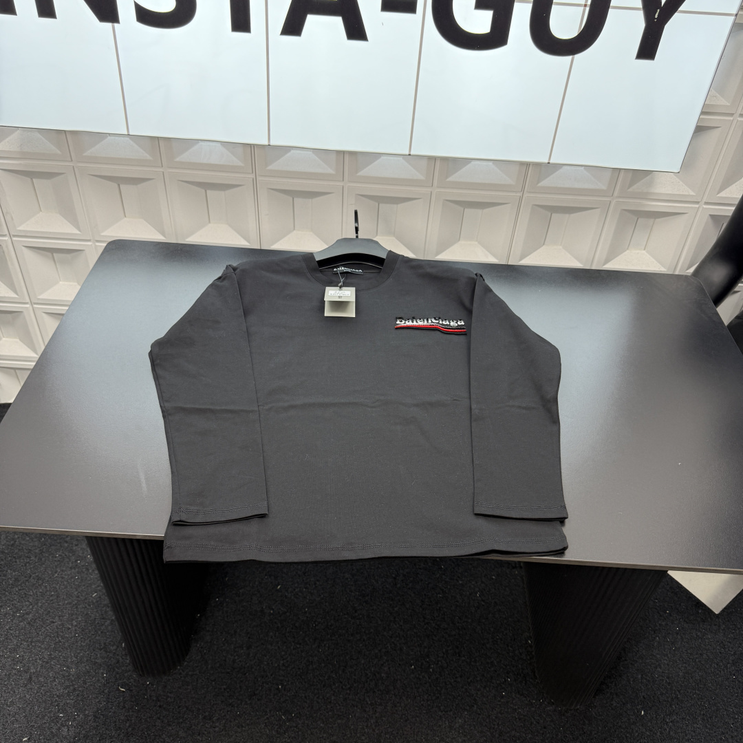 春季新款上新爆炸输出巴黎世家长袖T恤打底衫 胸前小Logo 418177