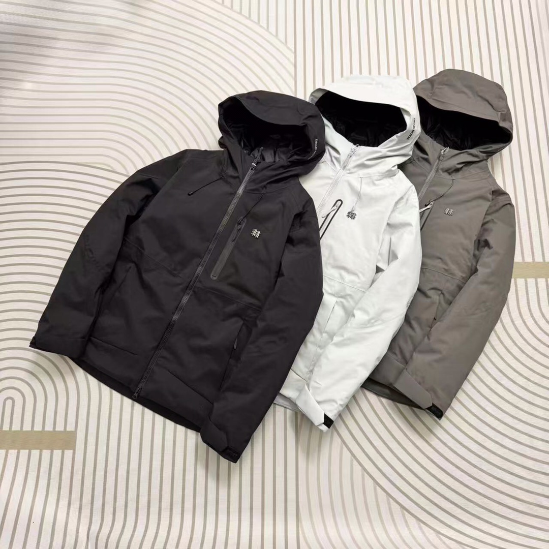 秋冬爆款热销推荐款大鹅连帽羽绒服 80绒手臂刺绣黑标 轻薄款 404323
