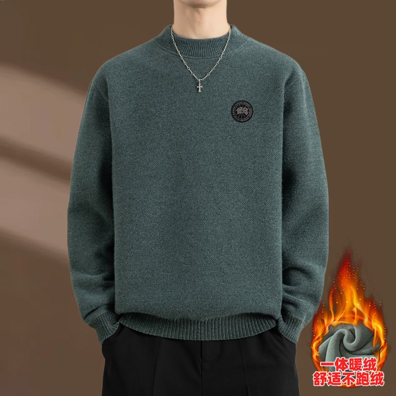 大鹅25s秋冬季新款男士假两件衬衫翻领纯色毛衣