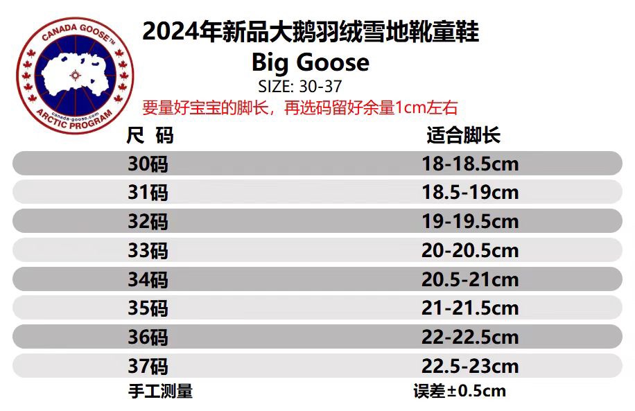 大鹅加绒高帮羽绒儿童雪地靴30 37码